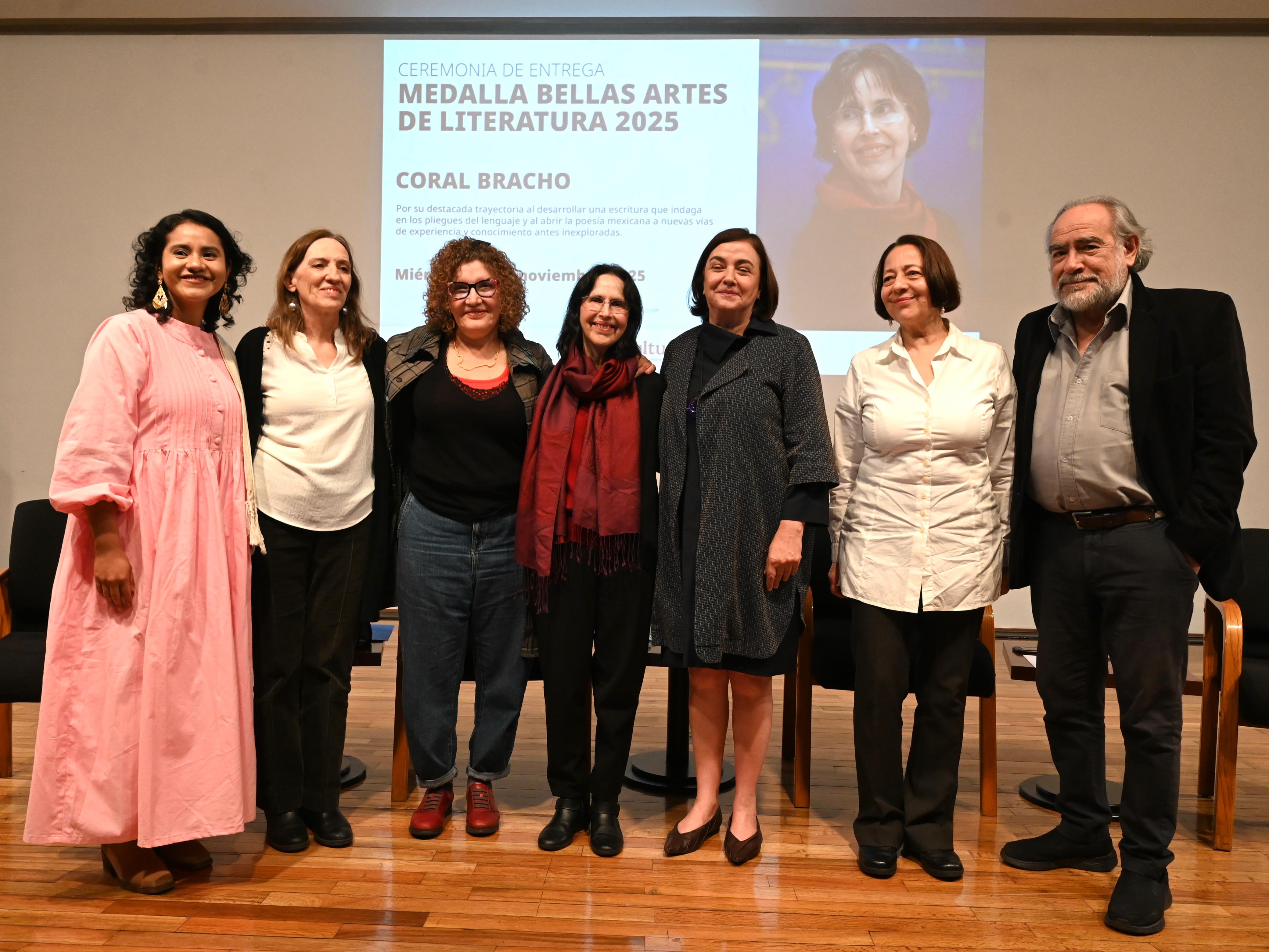 La Secretaría de Cultura del Gobierno de México y el Instituto Nacional de Bellas Artes y Literatura (INBAL) entregaron la Medalla Bellas Artes de Literatura 2025 a la poeta Coral Bracho (Ciudad de México, 1951), en una ceremonia en la Sala Manuel M. Ponce del Palacio de Bellas Artes, hoy, 19 de noviembre de 2025, en reconocimiento a su aportación a las letras mexicanas y por su destacada trayectoria en la poesía contemporánea,