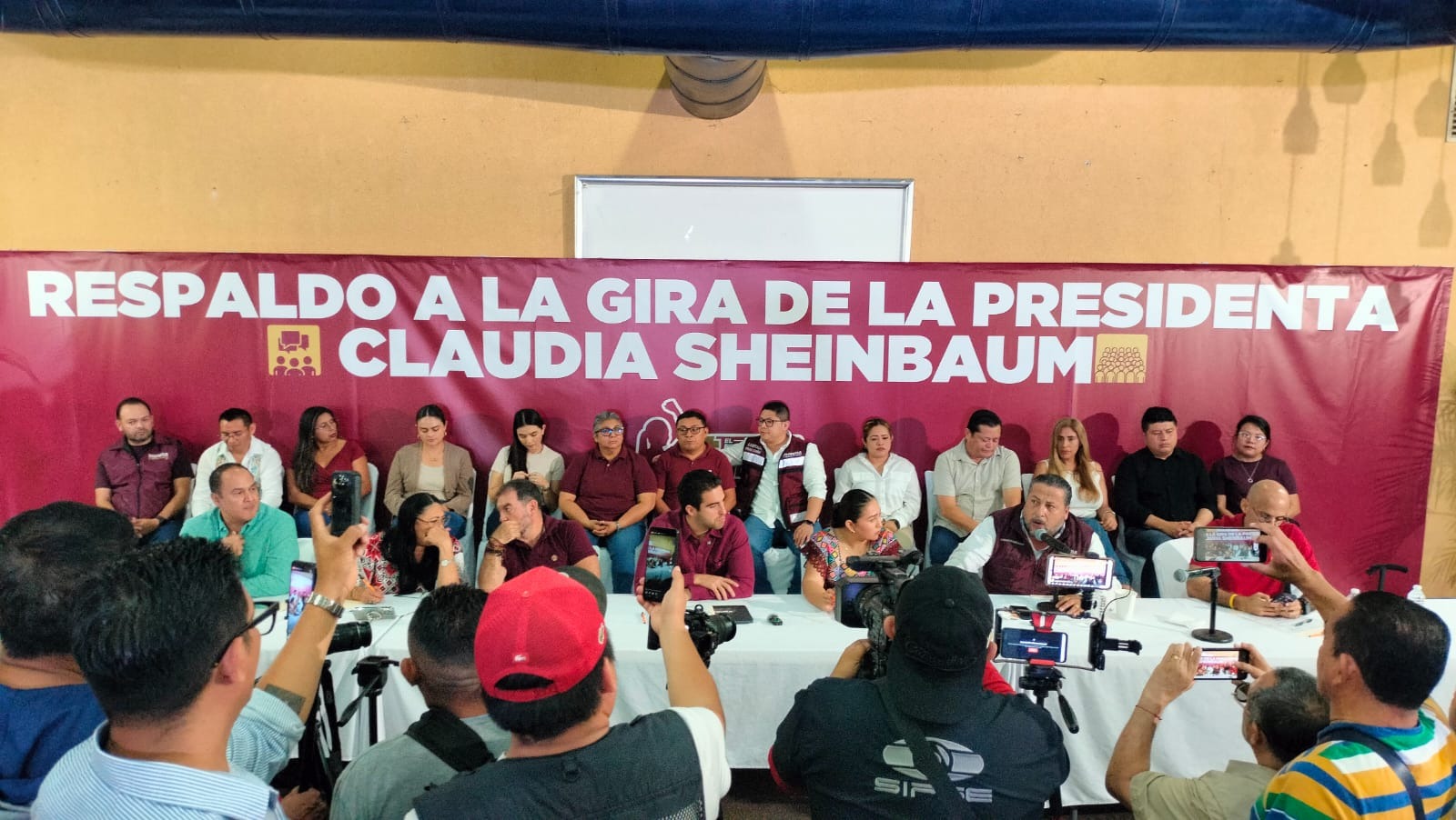 Estamos contigo presidenta, pero con corazón Kiwi, estaban ahí el senador Gino Segura con agenda en mano, los diputados federales Humberto Aldana, Mildred Ávila y Juan Carrillo, este último verde.