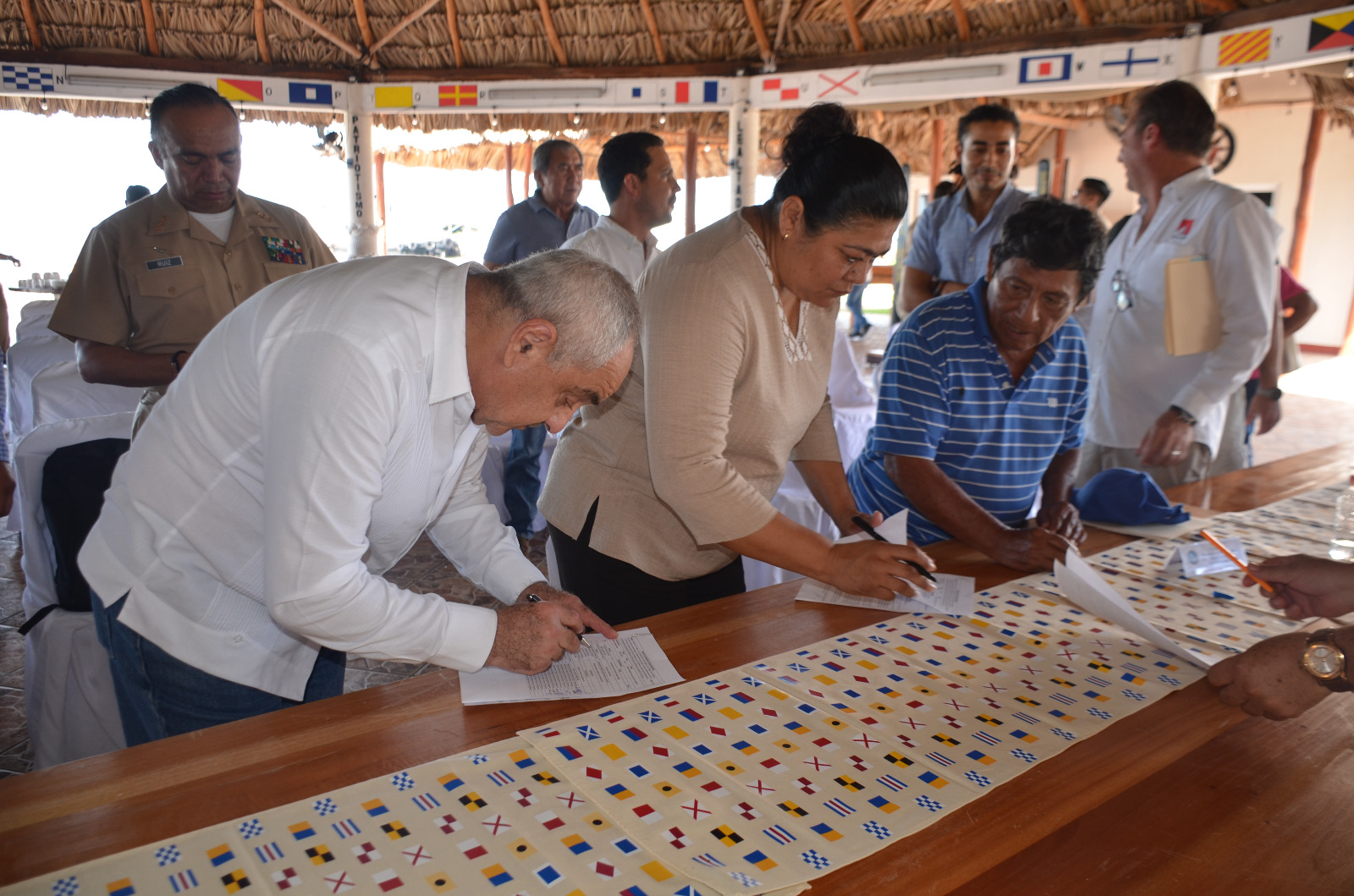Destacando la presencia del Comandante de este Mando Superior en Jefe, Vicealmirante Gilberto Carballo Ávila; el Secretario de Gobierno del estado de Campeche, Ingeniero Armando Toledo Jamit el Jefe de la Unidad de Capítanias de Puerto y Asuntos Marítimos, Vicealmirante Ubaldo Gómez Rodríguez; así como el Capitán de Puerto de Campeche, Capitán de Altura Jean Paul López Rodríguez.