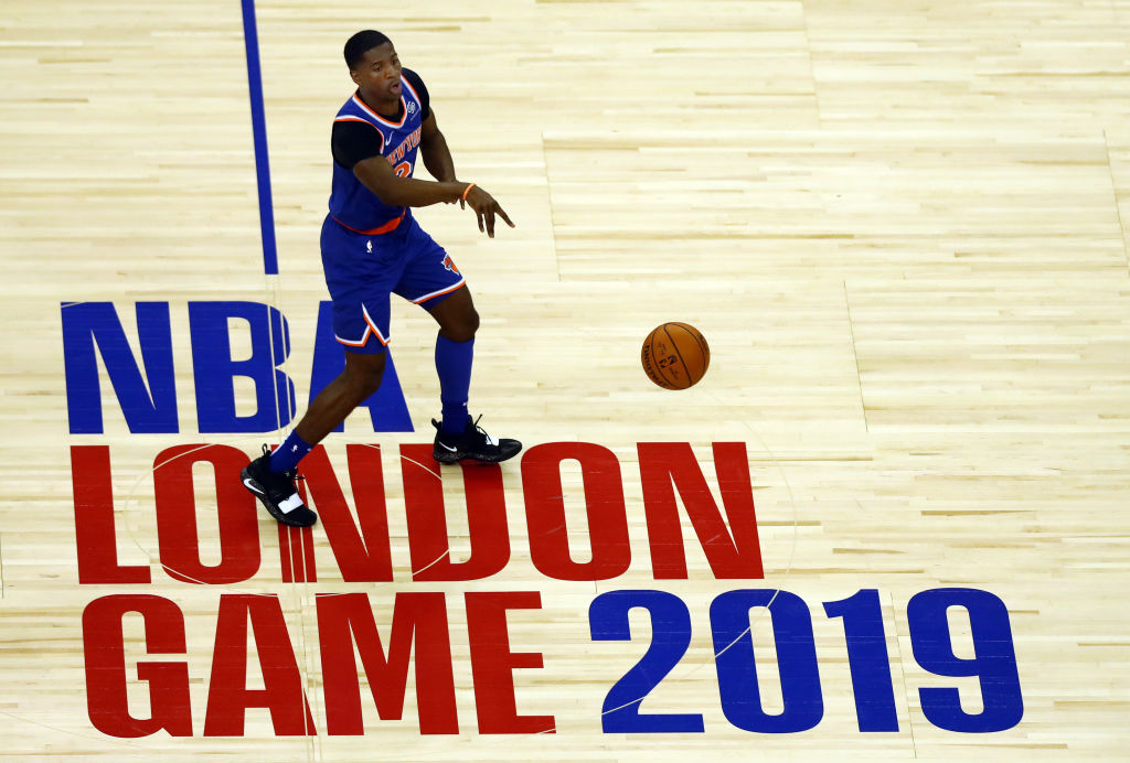 LONDON, ENGLAND – JANUARY 17: Damyean Dotson of The New York Knicks in action during the NBA London game 2019 between Washington Wizards and New York Knicks at The O2 Arena on January 17, 2019 in London, England. (Photo by Naomi Baker/Getty Images)