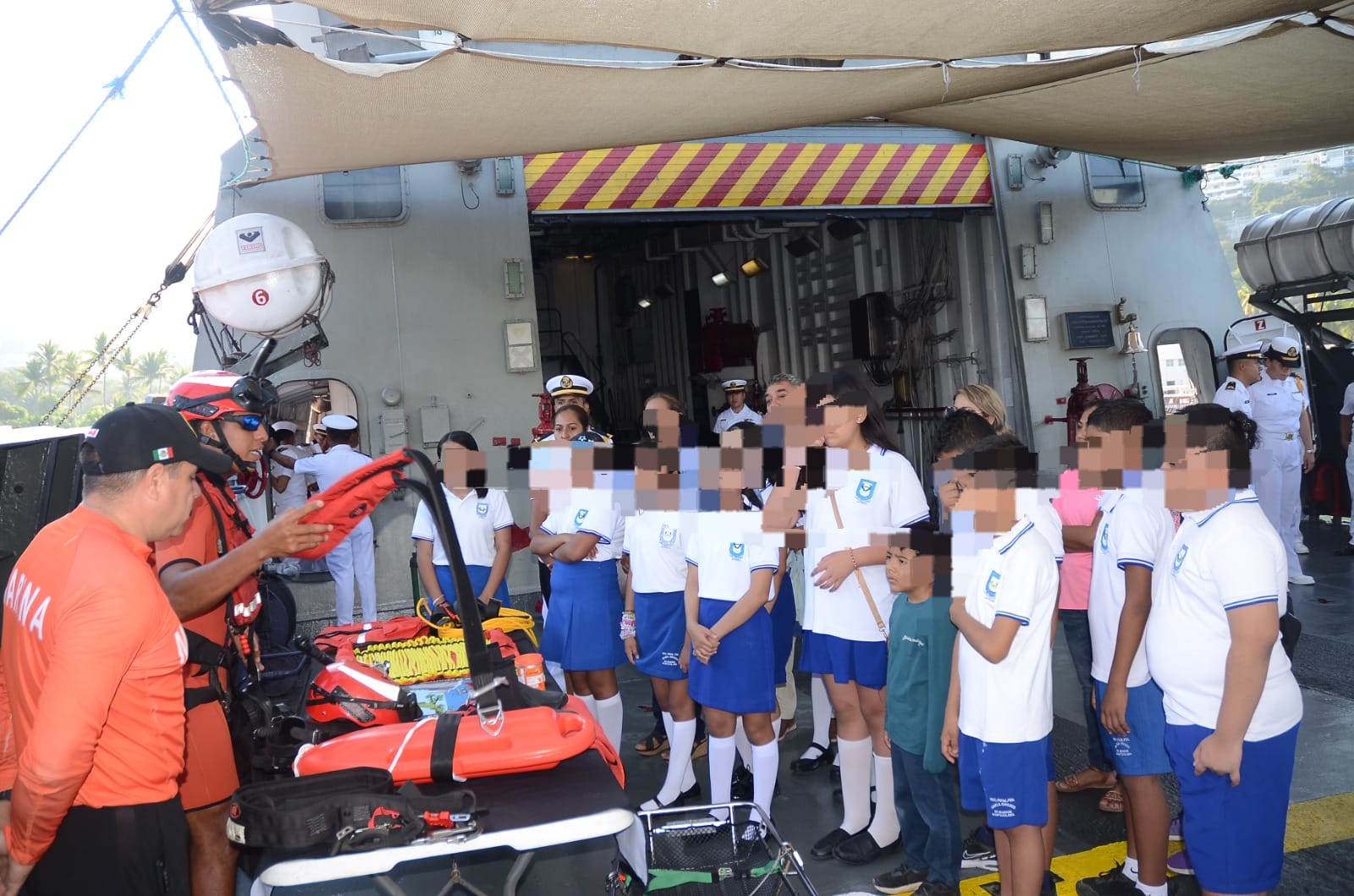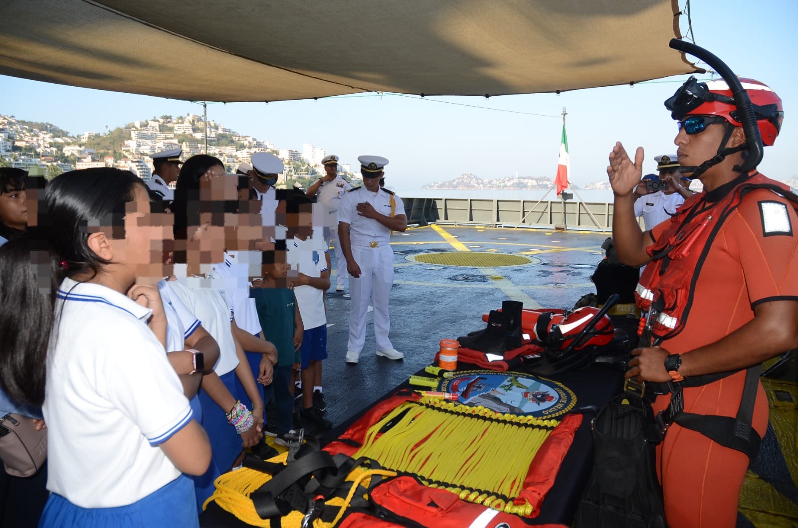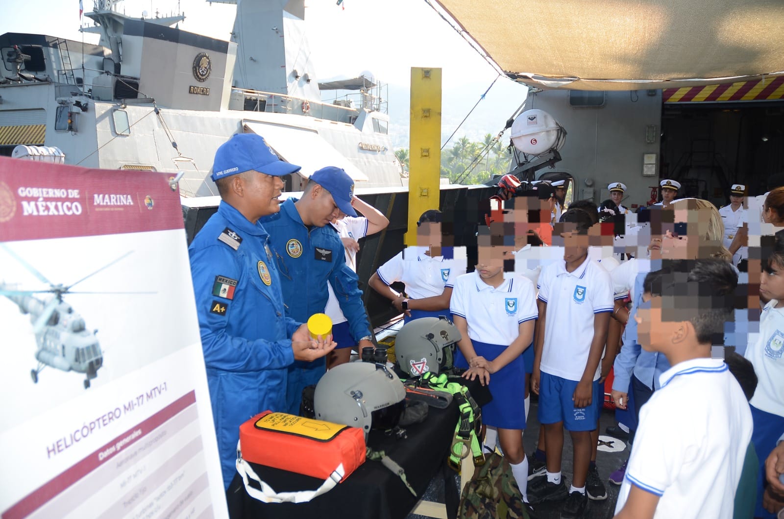 Posteriormente, exploraron helicópteros tipo MI-17 y Panther, donde las tripulaciones explicaron sus características técnicas y misiones de rescate; abordaron una Patrulla Oceánica para conocer el equipamiento y la preparación necesaria para patrullar las aguas territoriales; del mismo modo, personal de Infantería de Marina y nadadores de rescate de la Estación Naval de Búsqueda, Rescate y Vigilancia Marítima (ENSAR-Acapulco) compartieron experiencias sobre sus operaciones en situaciones de emergencia y desastres naturales.
