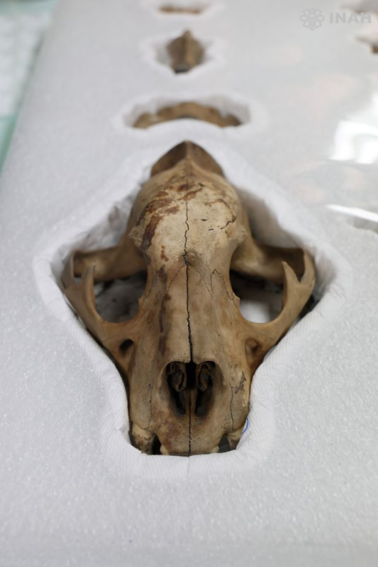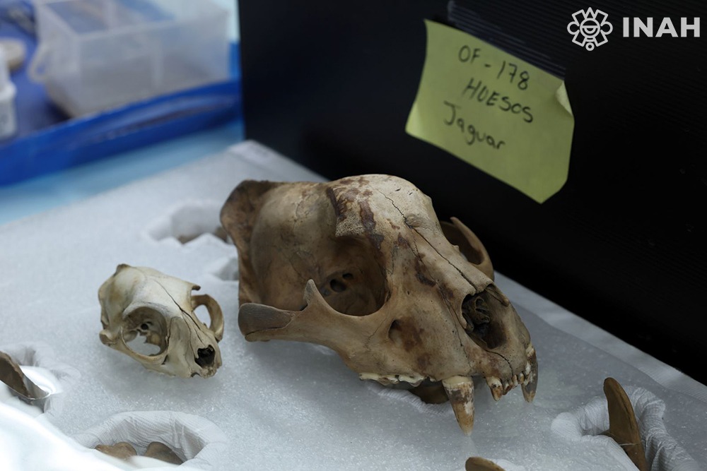 “Hemos recolectado más de 400 frondas de coral, extraídas del Pacífico, incluso, probablemente, del extremo sur de la península de Baja California; 200 estrellas marinas, 95 % del tipo chispas de chocolate (Nidorellia armata), y un jaguar hembra ataviado con cascabeles de cobre, capturado en la selva y mantenido en el vivario de Moctezuma Xocoyotzin(tlatoani de 1502 a 1520 d.C.)”, comenta López Luján.