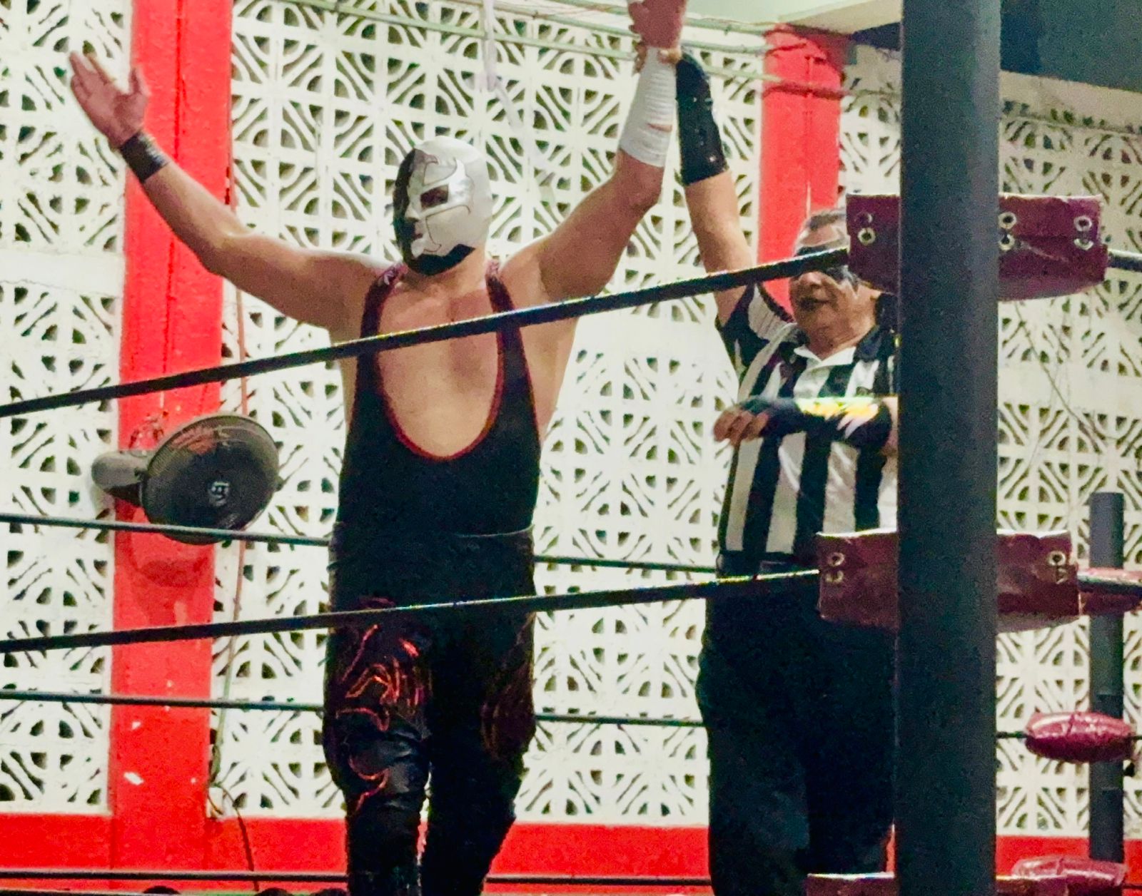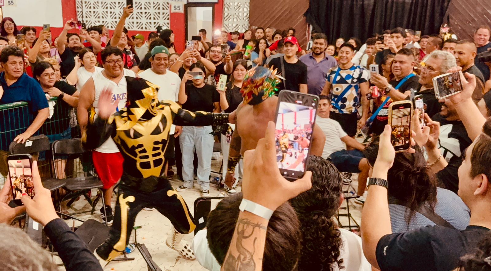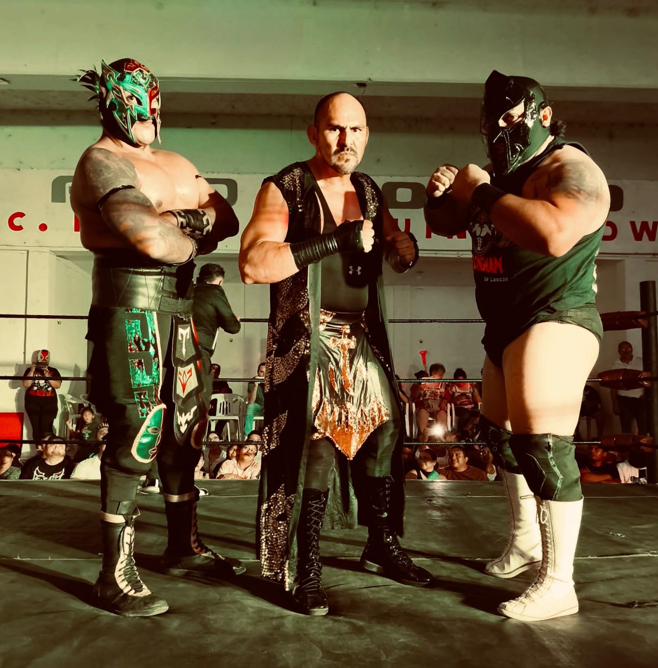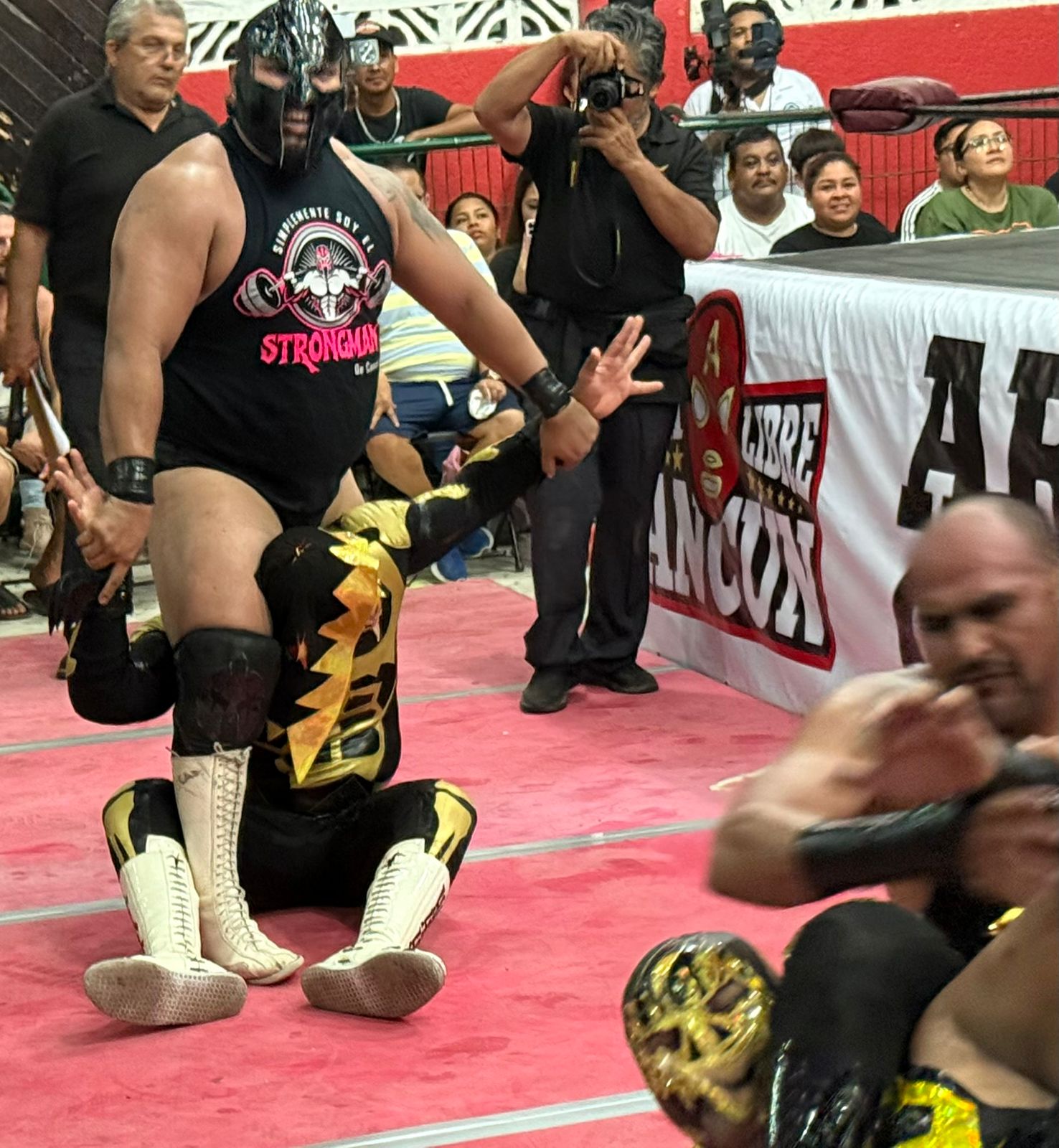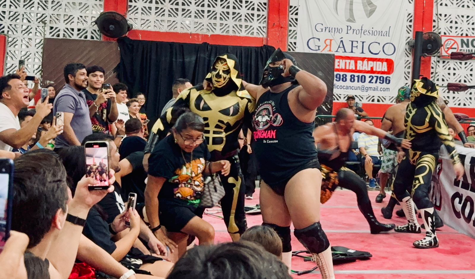 Enseguida llegó el turno del combate semifinal, en la que se presentó El Sagrado como invitado de lujo, recordando que hace diez años él fue parte del primer cartel presentado por Lucha Libre Cancún.