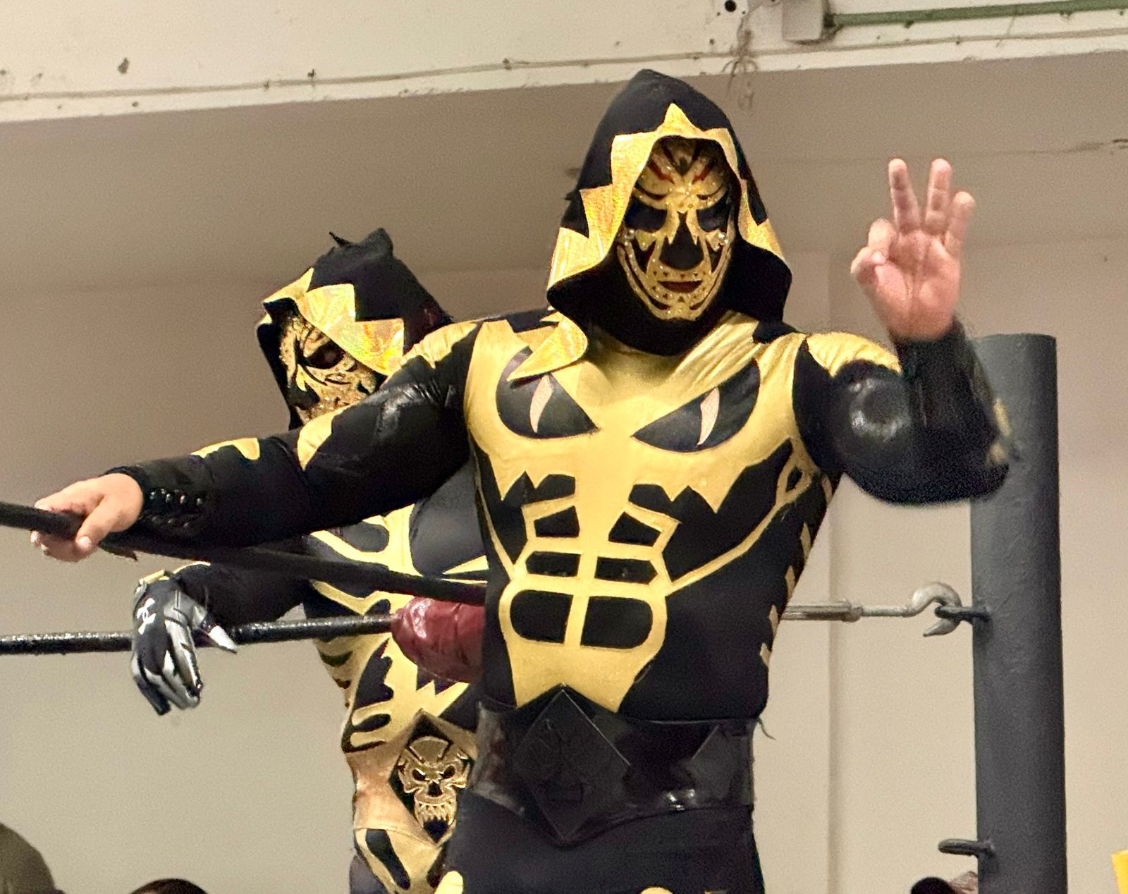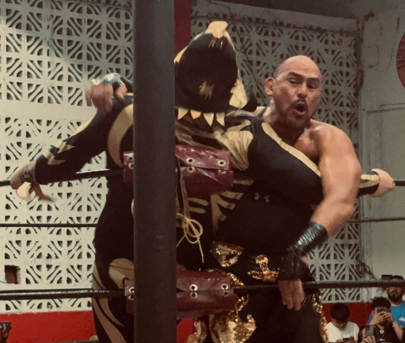 En esta ocasión El Sagrado hizo equipo con Gran Tigre y Axtar, quienes terminaron por derrotar a la tercia conformada por Corsario NG, Arializ y el legendario Araña Negra, quien por cierto terminó muy lastimado de una de sus rodillas.
