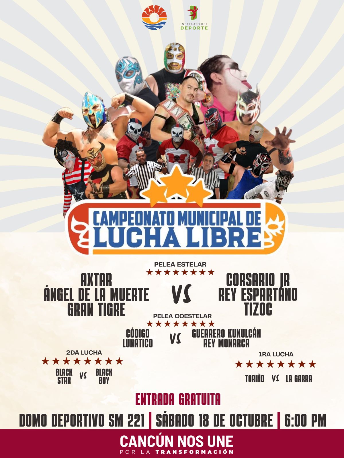 Cabe señalar que el Primer Campeonato Municipal de Lucha Libre, ha ido recorriendo puntos estratégicos y populosos de la ciudad, ya que después del silbatazo de salida en la explanada del Palacio Municipal en marzo pasado, el certamen ha llegado al Parque Ecológico de Villas Otoch (abril), al Domo Deportivo de Villas Otoch Paraíso (mayo), a la  Unidad Deportiva de la Región 103 (julio) y más recientemente a la Plaza Cívica del ejido Alfredo V. Bonfil (septiembre).
