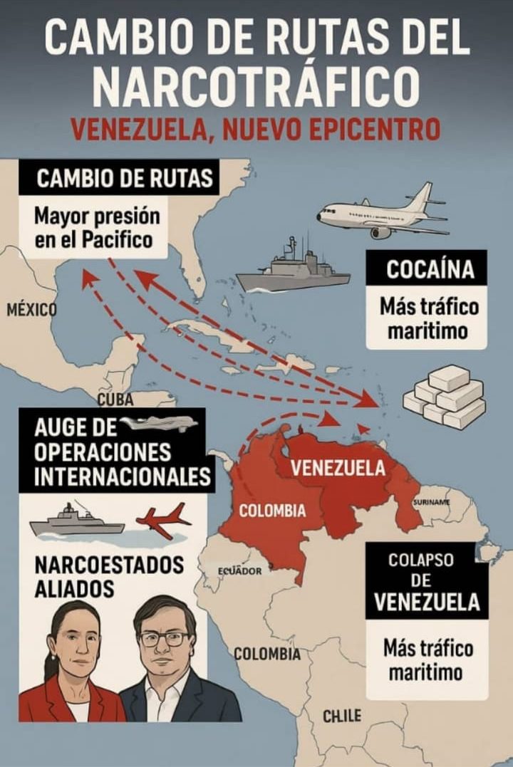 En tanto, Gustavo Petro, presidente de Colombia, se hace de la vista gorda, mientras los generales venezolanos coordinan operaciones con las FARC disidentes y el ELN. Usan estados fronterizos como Apure, Táchira y Zulia para mover droga y armas. Petro no combate. Petro protege.