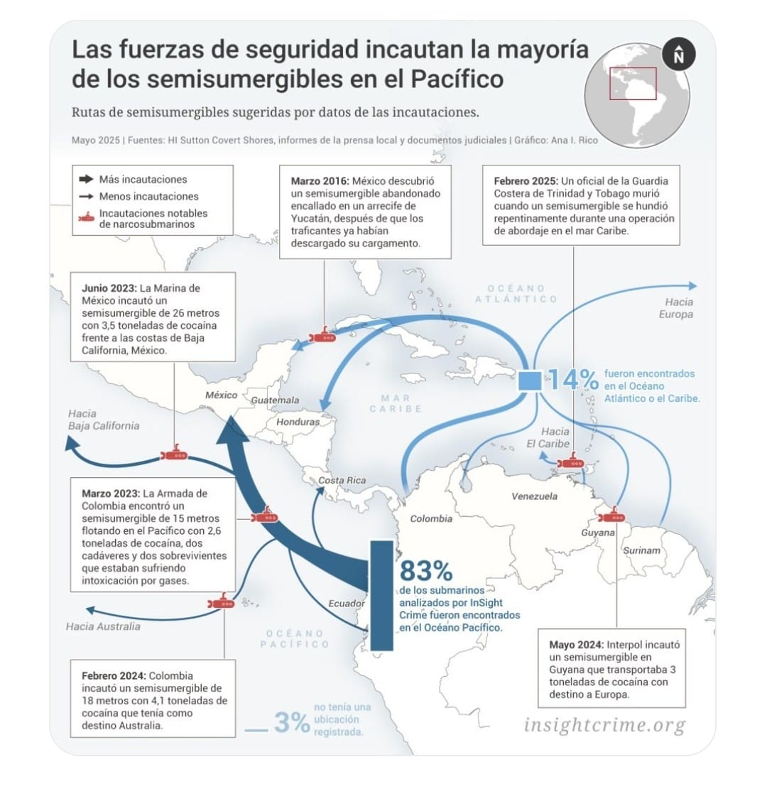 Colombia enfrenta una sobreproducción de cocaína histórica, lo que ha saturado las rutas terrestres y aéreas, la consecuencia: aumento del tráfico marítimo en la zona del Atlántico y o Caribe