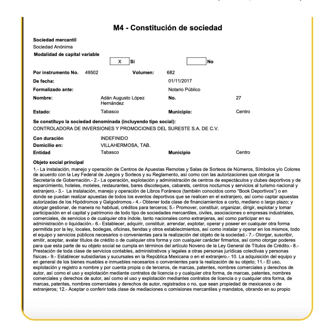 Por su parte, Humberto Bermudez Requena, hermano del extitular de seguridad pública de Tabasco, Hernán Bermudez Requena, dio de alta en 2017 una sociedad llamada “Controladora de Inversiones y Promociones del Sureste”, junto con Joszef Alexander Arguedas Troyo, en la notaría número 27 de Centro, Tabasco, donde el titular que ejerció como autoridad competente fue el propio Adán Augusto López Hernández.
