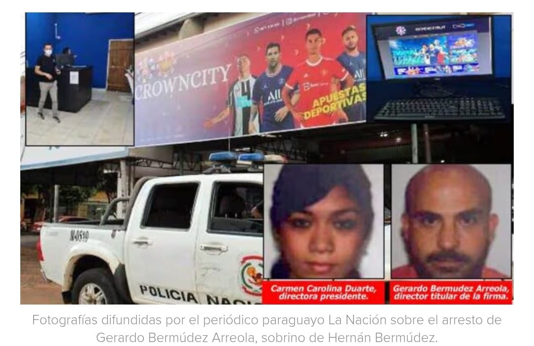 Aunado a ello, en días recientes, las autoridades de Paraguay han acusado a Gerardo Bermúdez Arreola, sobrino de Hernán, por explotación ilegal de apuestas deportivas a través de los casinos Crown City.