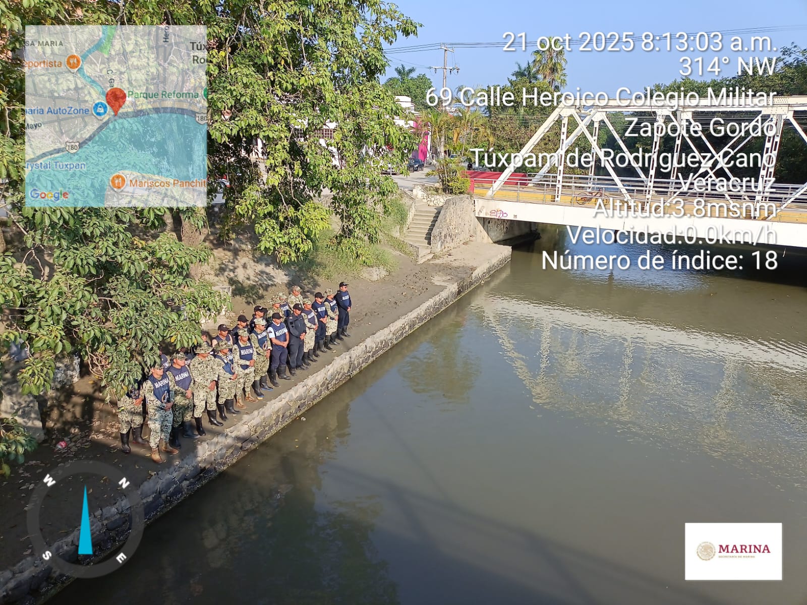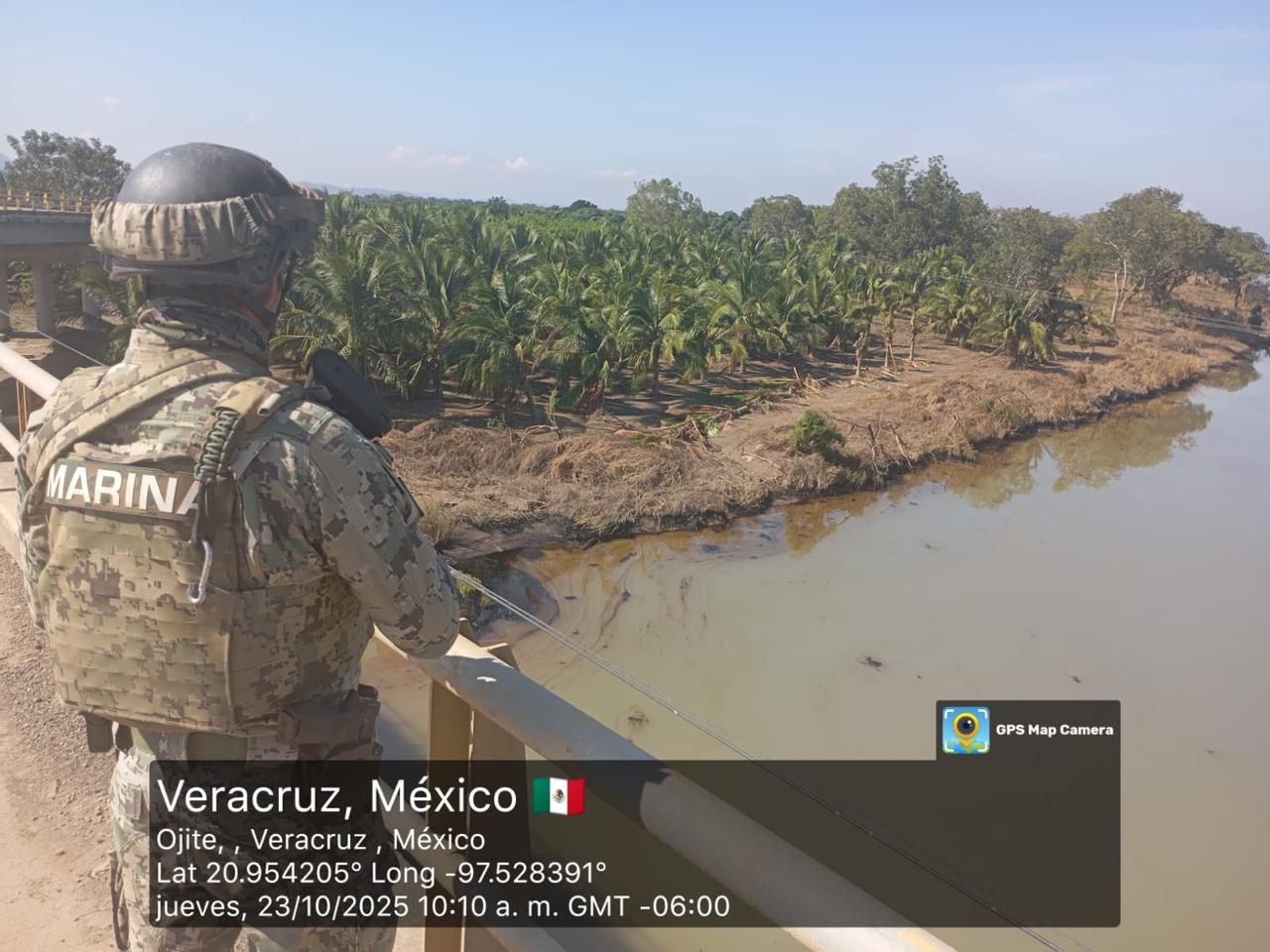 De igual manera, se informa que el personal y material con que se cuenta es suficiente para atender esta contingencia, en la que se emplean dos aviones, un helicóptero, dos drones, siete embarcaciones y 10 vehículos de la Armada de México que realizan vuelos de reconocimiento, recorridos marítimos y terrestres en las zonas de mayor afectación del río Tuxpan-Pantepec.