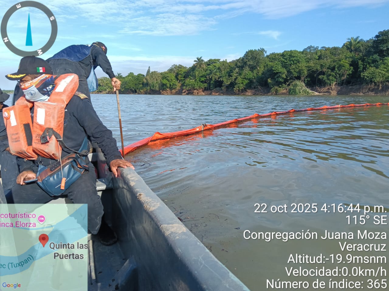 Cabe destacar que, al momento el derrame de hidrocarburos se encuentra contenido debido a las medidas implementadas de manera oportuna por la Secretaría de Marina a través del Mando Unificado en coordinación con representantes de: ASIPONA Tuxpan, Capitanía de Puerto de Tuxpan, Agencia Nacional de Seguridad Industrial y de Protección al Medio Ambiente del Sector Hidrocarburos (ASEA), Petróleo Mexicanos (PEMEX), Comisión Nacional de Áreas Naturales Protegidas (CONANP), Comisión Federal para la Protección Contra Riesgos Sanitarios (COFEPRIS), Comisión del Agua del Estado de Veracruz (CAEV), Protección Civil del Municipio de Tuxpan y diversos Cesionarios de la ASIPONA Tuxpan, así como de Particulares.