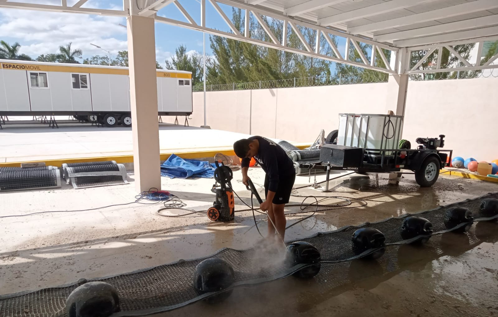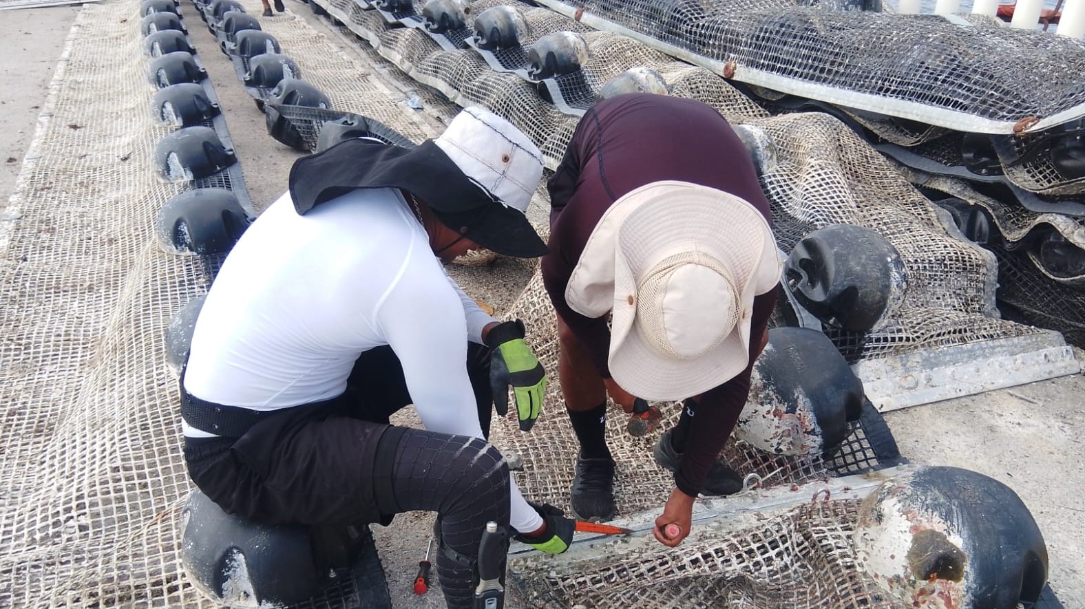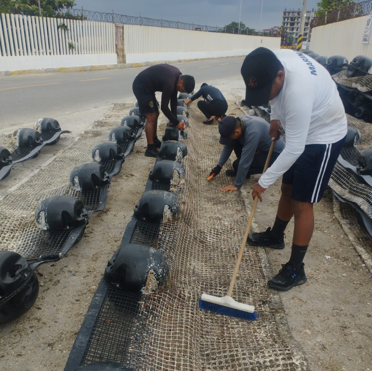 Para continuar con dichas acciones, se mantienen empleadas 16 unidades de superficie, de las cuales uno es un Buque Sargacero Oceánico, 11 Buques Sargaceros Costeros y cuatro Sargaceras Anfibias, de igual forma se cuenta con 16 embarcaciones menores de apoyo, así como 9 mil 500 metros de barreras empleadas para su contención, y se tiene proyectado en coordinación con el Gobierno del Estado, implementar seis mil metros más; mismas barreras que por medidas preventivas, en algunas zonas son retiradas durante temporada de frentes fríos, y se encuentran en etapa de repliegue para brindarles mantenimiento, limpieza, arreglo de desperfectos y cambio de componentes, para asegurar su correcto funcionamiento, y al término de esta temporada, serán recolocadas en las zonas requeridas.