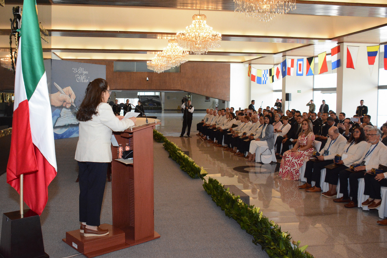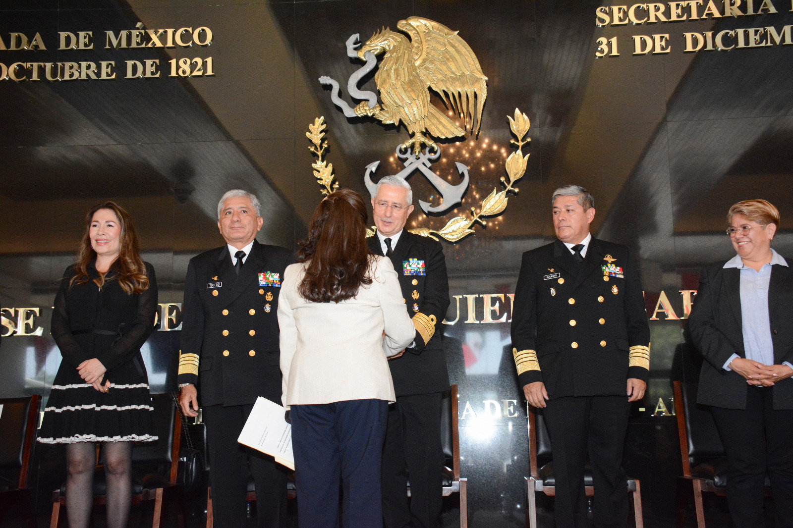 La ceremonia se llevó a cabo en el Salón Candiles del edificio sede de esta Secretaría, donde presidió el Almirante Francisco Guillermo Escamilla Cázares, Oficial Mayor de Marina, en representación del Almirante Raymundo Pedro Morales Ángeles, Secretario de Marina y Alto Mando de la Armada de México, quien estuvo acompañado de autoridades navales.