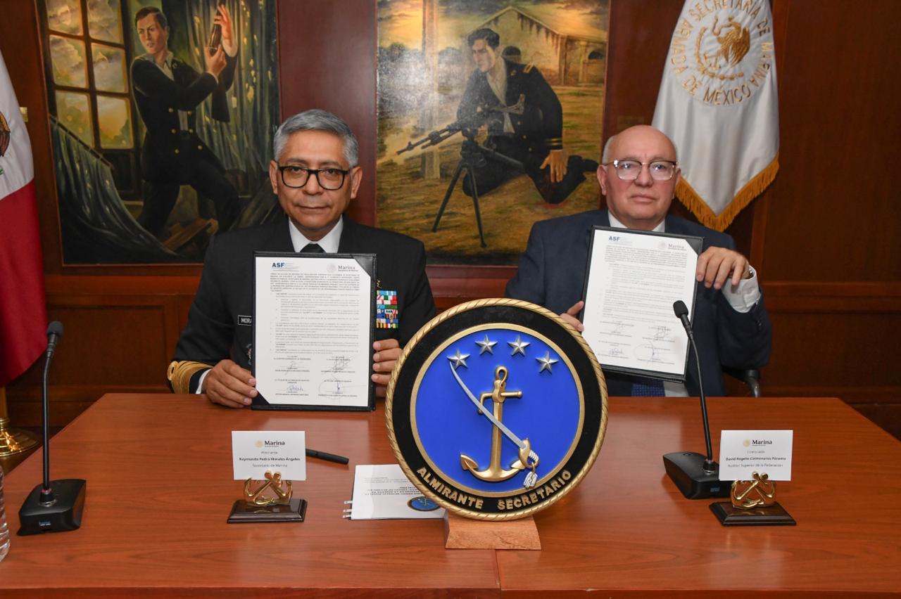 Cabe destacar, que citado convenio fue firmado por el Almirante Raymundo Pedro Morales Ángeles, Secretario de Marina, asistido por el Almirante Francisco Guillermo Escamilla Cázares, Oficial Mayor de Marina, así como por el Licenciado David Rogelio Colmenares Páramo, Auditor Superior de la Federación, acompañado del Licenciado Víctor Manuel Andrade Martínez, Titular de la Unidad de Asuntos Jurídicos de la ASF.