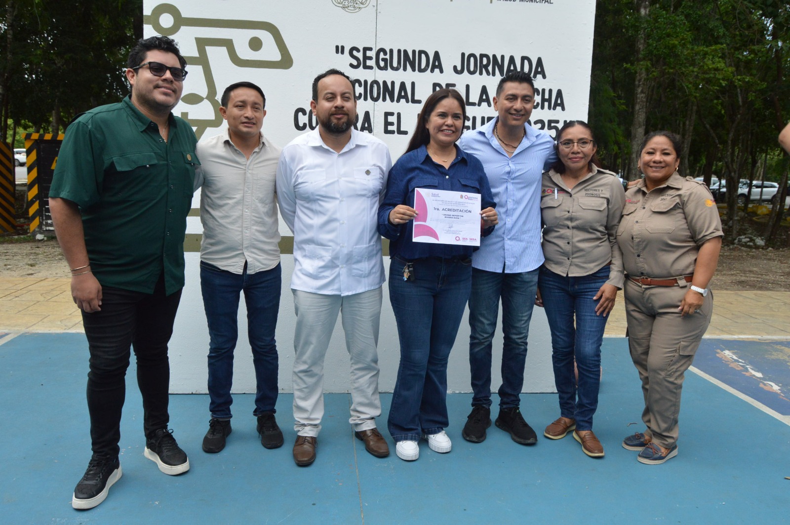 Durante el evento, se entregaron acreditaciones como espacios públicos libres de criaderos de mosquitos a la Unidad Deportiva Riviera Maya y al Centro de Atención al Migrante, que se unen a la Secretaría de Servicios Públicos Municipales en recibir esta distinción, que representa un compromiso con la salud pública y un ejemplo de responsabilidad social.