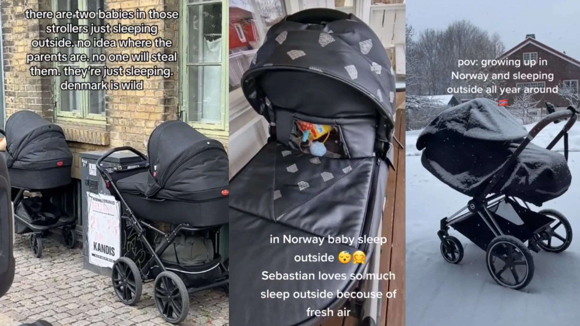Es común observar en los países nórdicos cochecitos con bebés durmiendo fuera de las casas, tiendas o cafeterías, incluso en pleno invierno. En días recientes se han viralizado en TikTok cientos de videos de carriolas abandonas en las calles, con bebés en ellas, mientras nieva y con una temperatura de hasta menos 10 grados en las calles. El extraño suceso se llama “siesta nórdica” y habitual en muchas partes del mundo.