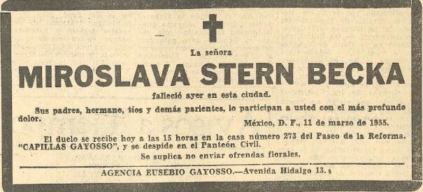 Estela publicada en EL UNIVERSAL en marzo de 1955 por la muerte de la actriz Miroslava Stern.
