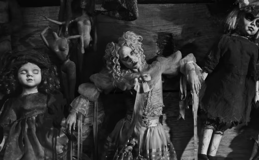 • La cantante se transforma en muñeca en un escenario tétrico que evoca a Thriller con muñecos reanimados en lugar de zombis.