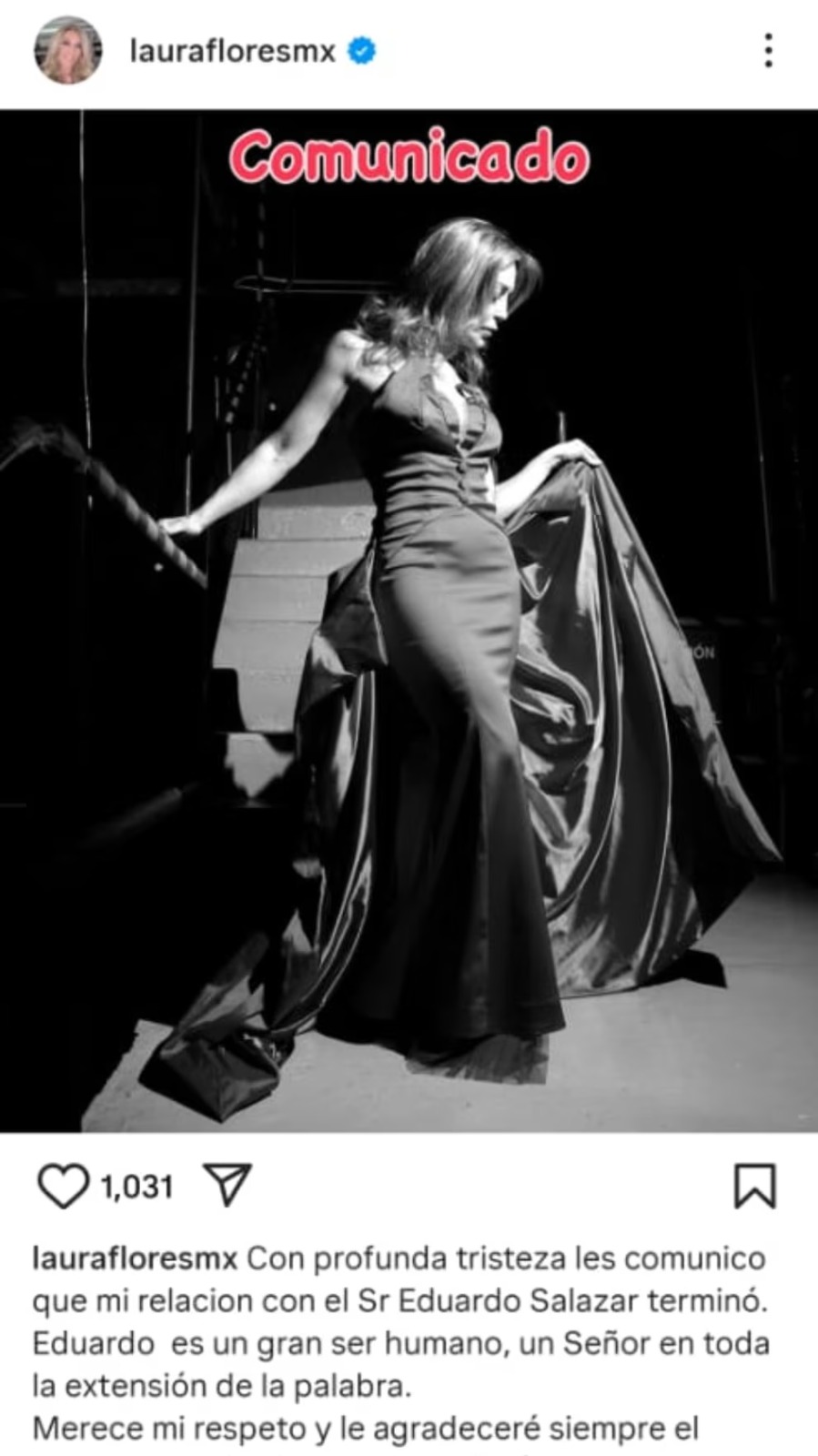 En el mensaje, Flores explicó que la decisión de separarse fue tomada por Salazar, a quien describió como un hombre íntegro y un gran ser humano. “Respeto profundamente su decisión y le deseo lo mejor”, escribió en el texto.