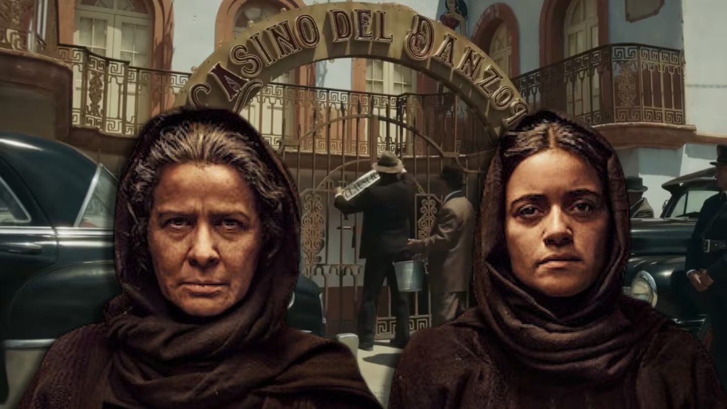Arcelia Ramírez y Paulina Gaitán interpretan a Arcángela y Serafina Baladro, las dos hermanas que construyeron la red de burdeles en donde explotaban sexualmente a mujeres jóvenes.