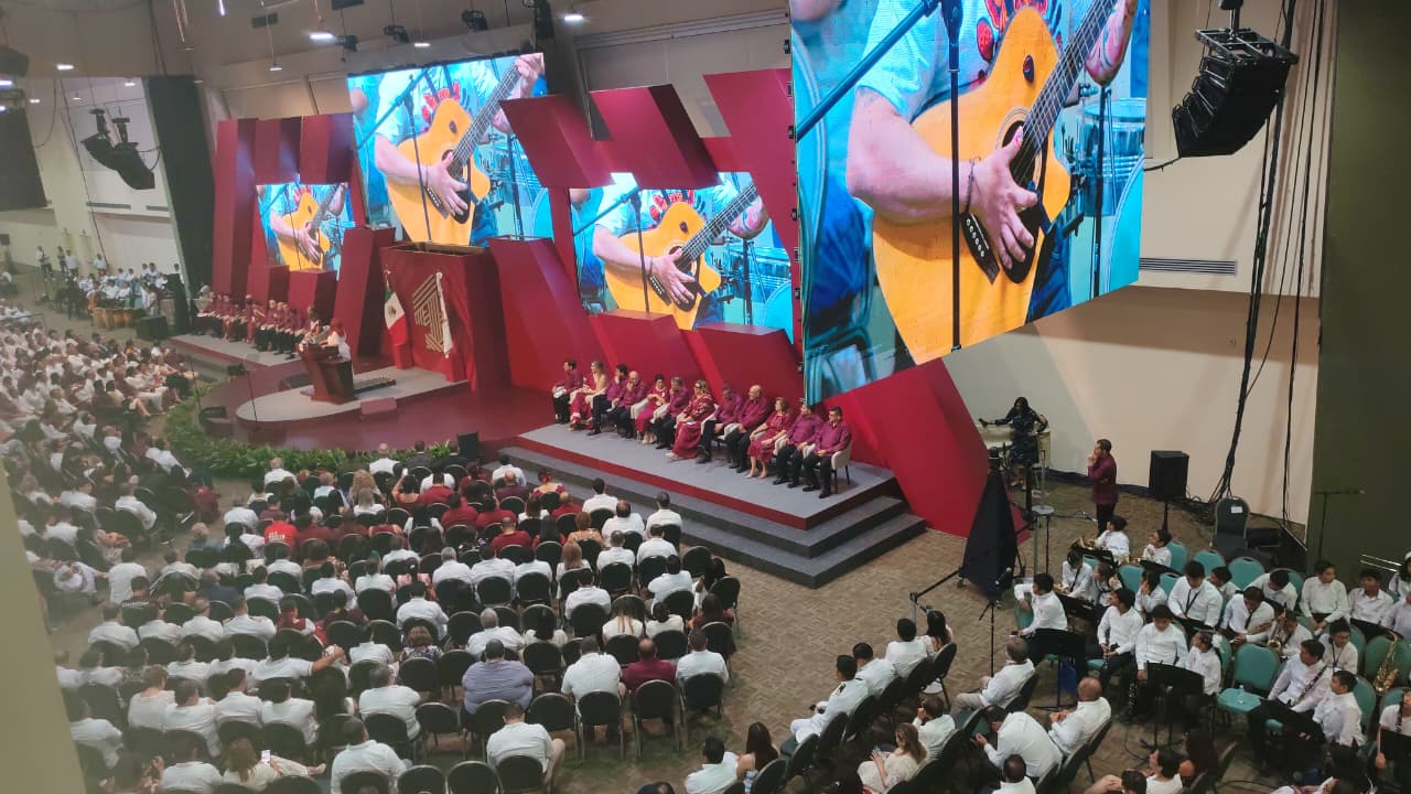 Aunque este año el formato del uniforme recuperó algo de solemnidad, en comparación a los anteriores que fueron verdaderos espectáculos con coreografías de mal gusto, tampoco hubieron logros que resaltar, a pesar que el Gobierno de Sansores Sanromán ha ejercido casi 100 mil millones de pesos en los últimos 4 años.