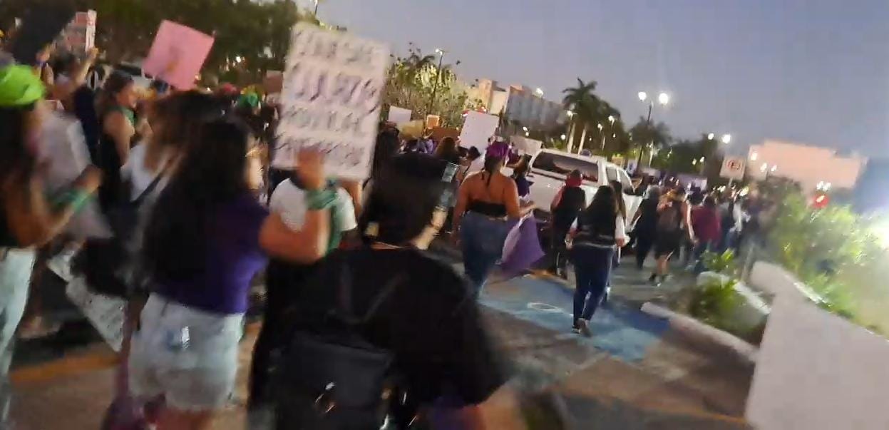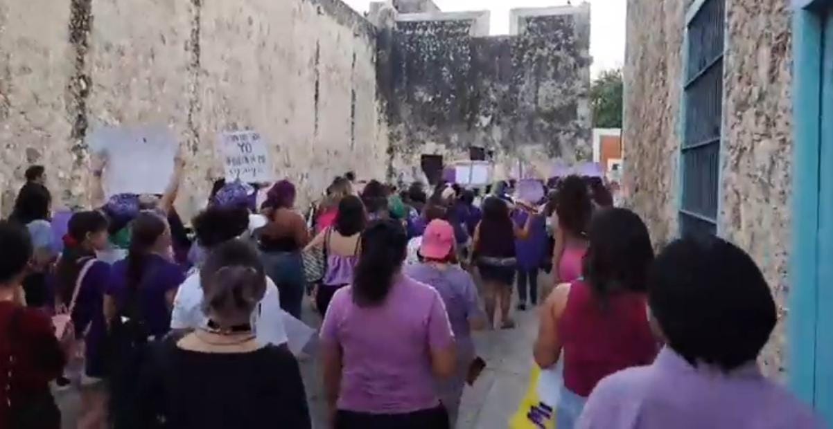 Como el año pasado, fueron cientos de mujeres las marcharon por el malecón y calles del centro de Campeche hasta el Palacio de Gobierno, donde expresaron su rechazo a la gobernadora Layda Sansores a quien acusaron de traidora.