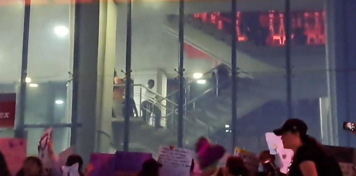Mujeres rompen vidrios del vestíbulo del Palacio de Gobierno y queman cartulinas, que estaban inscritas con consignas contra el Gobierno y funcionarios.