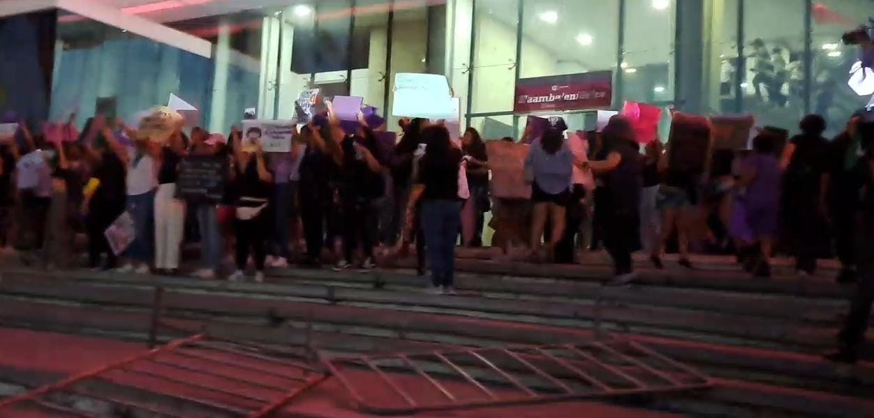 Ahí, un grupo de mujeres, que protestaron por la violencia contra la mujer, la misoginia y el derecho al aborto financiado por el Estado, rompió varios de los gruesos vidrios que recubren el vestíbulo y planta baja del edificio sede del Poder Ejecutivo Estatal.