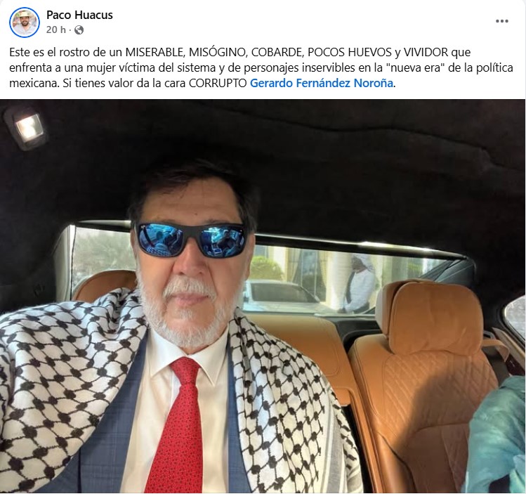 El post de Francisco Huacus, fue acompañado de la foto que el propio Fernández Noroña subió a su perfil, cuando a viajaba rumbo a Palestina.