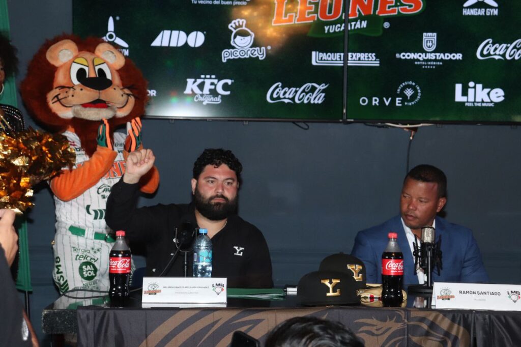 La presentación estuvo a cargo de Erick Arellano Hernández, propietario de los Leones de Yucatán, quien fue acompañado de David Cárdenas Cortés, director deportivo del conjunto.