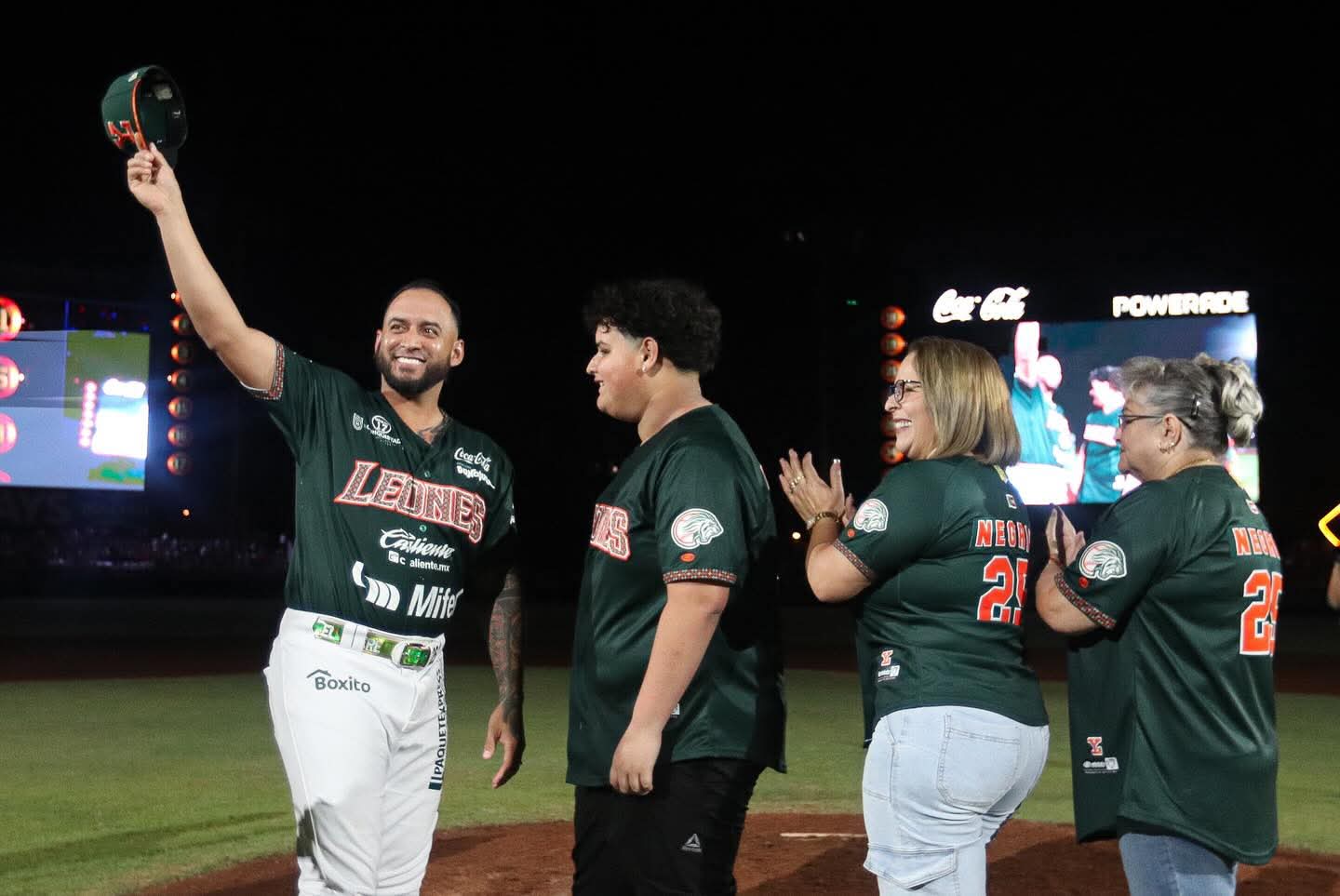 “El Asere” estuvo acompañado de su familia, así como de David Cárdenas Cortés, Director Deportivo, Lic. Alejandro Orozco García, Director de Administración y Finanzas, Lic. Felipe Casas González, Director de Estrategia y Comercialización, y de los más de 12,000 aficionados quienes se pusieron de pie en todo momento para homenajear con aplausos a todo lo hecho por el lanzador Cubano-Mexicano en estos 10 años.