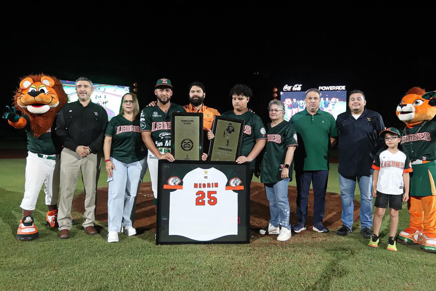 Mérida, Yuc. (Depto. Medios y Comunicación) 24 de julio del 2025.- Los Leones de Yucatán inmortalizaron el número 25 de Yoanner Negrín en un homenaje solemne y significativo para reconocer su trayectoria deportiva, sus logros y el legado histórico que ha dejado en el Club Leones de Yucatán.