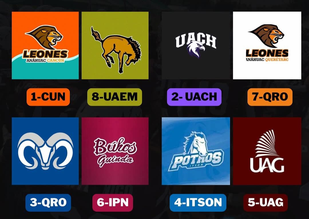 Los otros equipos calificados a la postemporada por el Grupo Centro, acompañando a los Leones de la UAC, son los Búhos del Instituto Politécnico Nacional (IPN) y los propios Potros Salvajes de la UAEM; en tanto que por el Grupo Bajío también son tres los conjuntos que siguen con vida, siendo estos los Borregos Salvajes del Instituto Tecnológico de Estudios Superiores de Monterrey Campus Querétaro (ITESMQ), los Tecos de la Universidad Autónoma de Guadalajara (UAG) y los Leones de la Universidad Anáhuac Querétaro (UAQ); mientras que del Grupo Norte avanzaron las Águilas de la UACH y los Potros del Instituto Tecnológico de Sonora (ITSON).