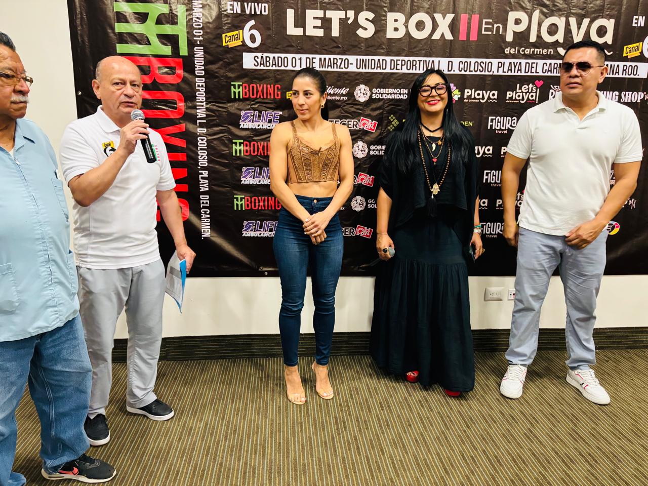 La velada “Let’s Box II” será histórica y de corte internacional, celebrando con tres contiendas de guantes rosas el Día Internacional de la Mujer, así lo expresó Patricia Fajardo en representación de Alberto López Castro, director del Instituto del Deporte en Solidaridad, acompañada de Juan Carlos Pelayo, Comisionado del CMB, así como de Mario Abarca, Presidente de la comisión de box, Lucha y artes marciales, y William Araiza en representación de Eric Ibarra de TM Boxing.