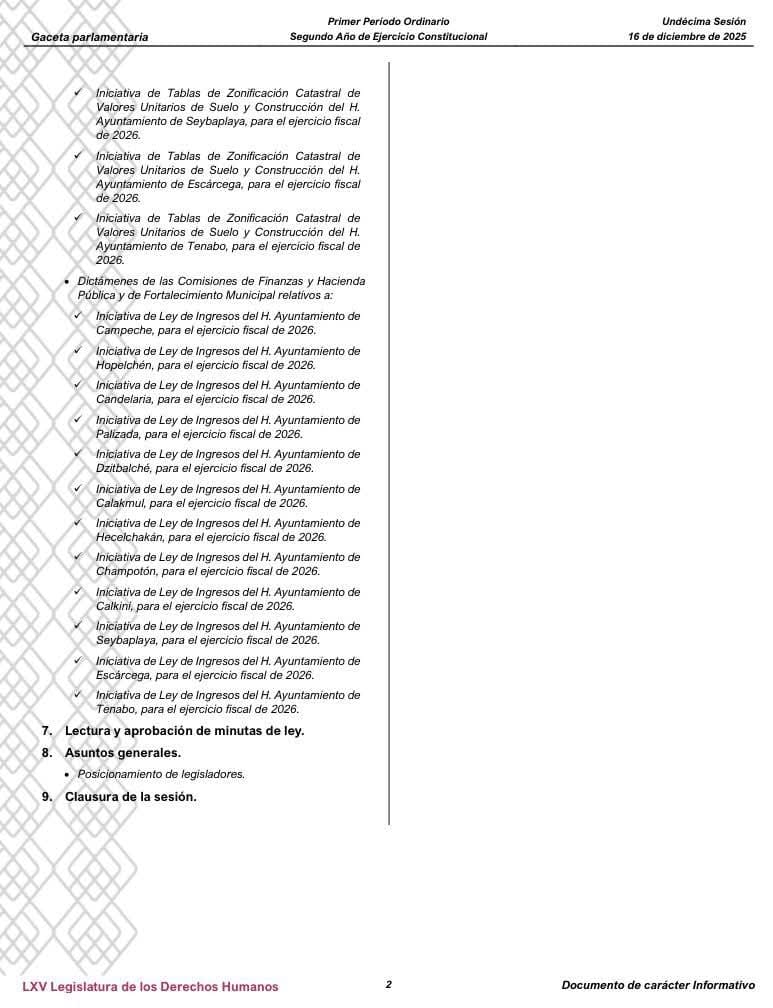 San Francisco de Campeche, Cam., 16 de diciembre.- Al dar a conocer que la Ley de Ingresos y Egresos propuesta para el 2026 por el edil Pablo Gutierrez Lazarus no pasó el filtro del análisis en comisiones, el diputado Pedro Armentía López afirmó que no se permitirá la aprobación de medidas que atentan contra el bolsillo de los ciudadanos carmelitas.