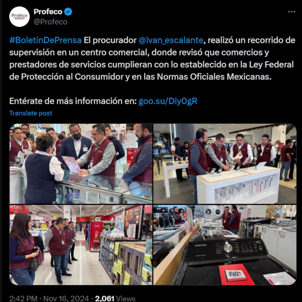 Tras lo anterior, la Profeco recordó a la población consumidora sus canales para recibir quejas, denuncias y brindar asesoría: Teléfono del Consumidor, 55 55688722 y 800 4688722, así como las redes sociales X: @AtencionProfeco y @Profeco y Facebook: ProfecoOficial.