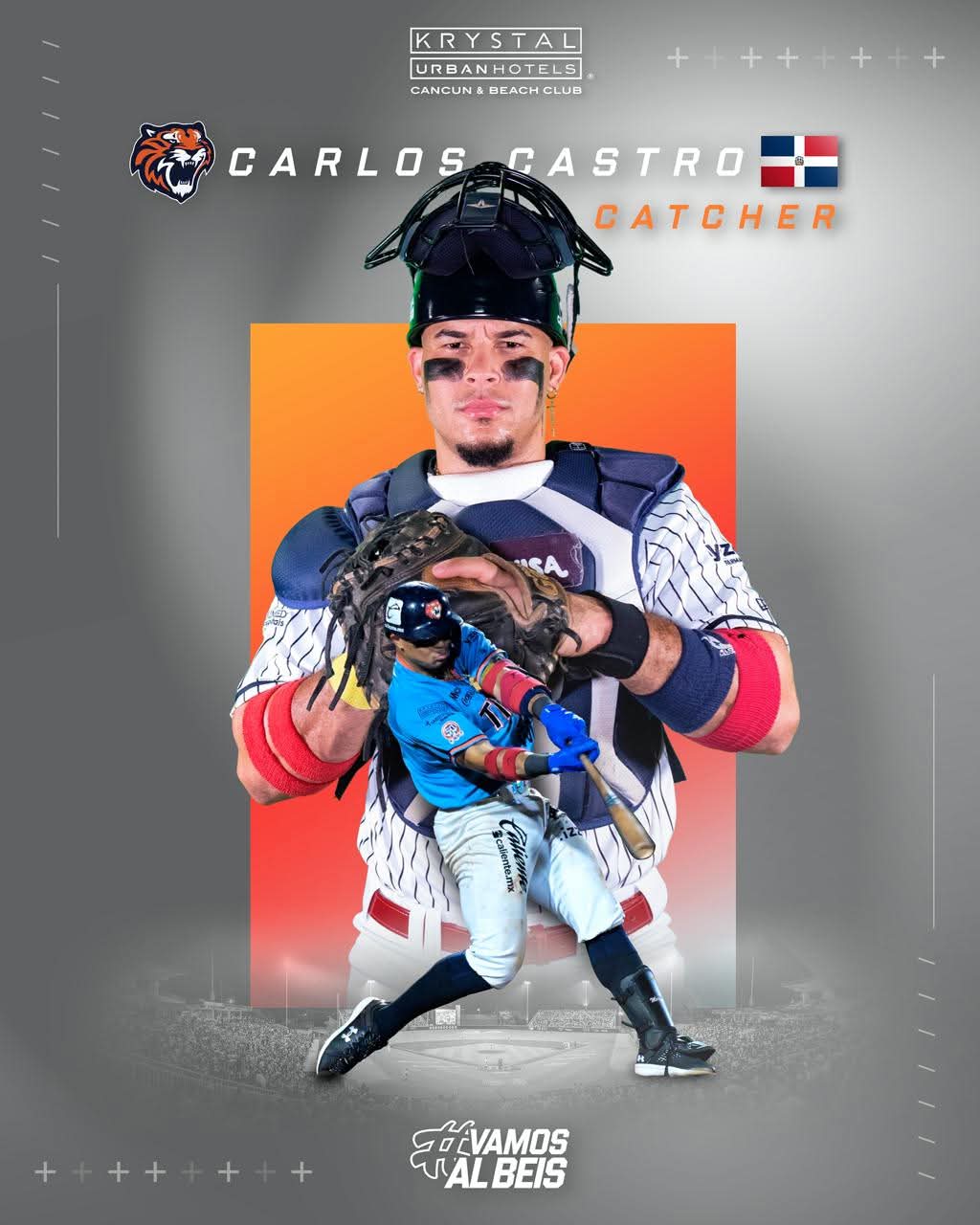 Cancún, Q. Roo, 23 de enero.- Como parte del proceso de la reestructuración del proyecto deportivo para la Temporada 2026 de la Liga Mexicana de Beisbol (LMB), la directiva de los Tigres de Quintana Roo anunció este día la incorporación del receptor y primera base dominicano Carlos Castro, quien se integra al conjunto felino para fortalecer el lineup.
