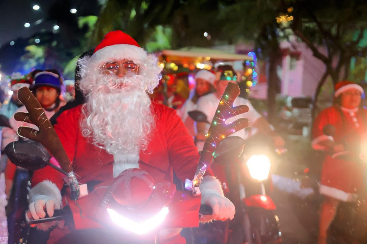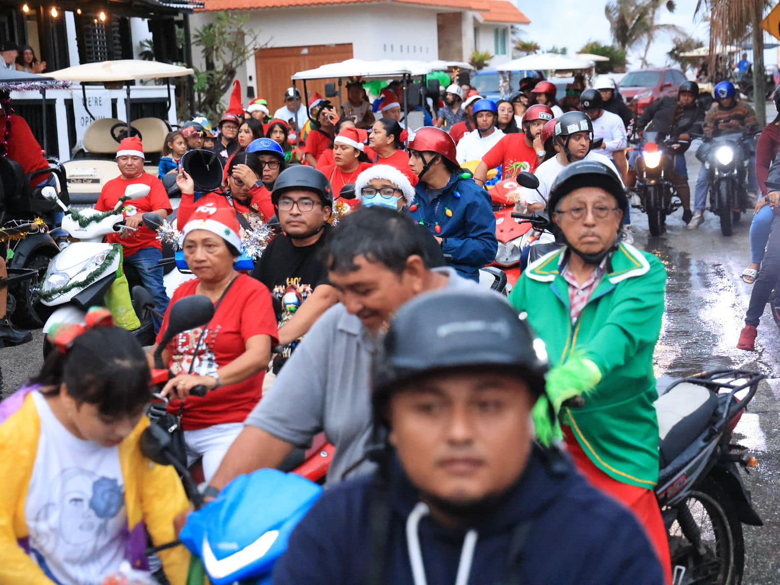 ISLA MUJERES, Q.ROO, 21 de diciembre-. En un ambiente de alegría, color y espíritu navideño, que no pudo estropear ni la lluvia que se dejó caer a ratos, la tradicional Caravana Navideña 2024 iluminó las calles de la isla con carros alegóricos y motocicletas decorados con luces y motivos alusivos a tan señaladas fechas.