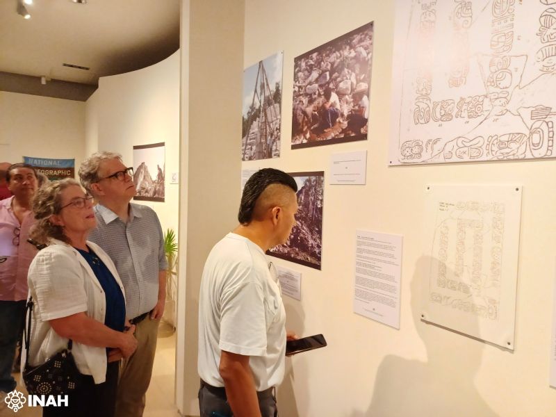 La exposición abre con más de 50 fotografías, documentos y dibujos de la Colección Boundary End Archaeological Research Center, organización sin fines de lucro, fundada por George Stuart; y cierra con imágenes de otros proyectos arqueológicos en el sitio, principalmente llevados a cabo por el INAH. Asimismo, presenta fragmentos de pintura mural y un panel de piedra, encontrados en Cobá.