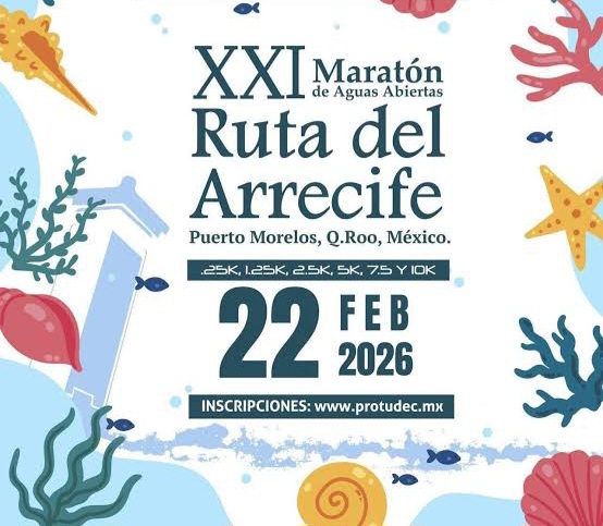 PUERTO MORELOS, Q. ROO a 17 de febrero 2026.- Entre las aguas azul turquesa que caracterizan al -Caribe Mexicano-, las del municipio de Puerto Morelos son ideales para la práctica de los deportes acuáticos, destacando los de Pesca y por supuesto los de Natación, entre ellos, el Maratón de Aguas Abiertas “La Ruta del Arrecife”, que en este 2026 vivirá su XXI edición, misma que se llevado a cabo este próximo domingo 22 de febrero.