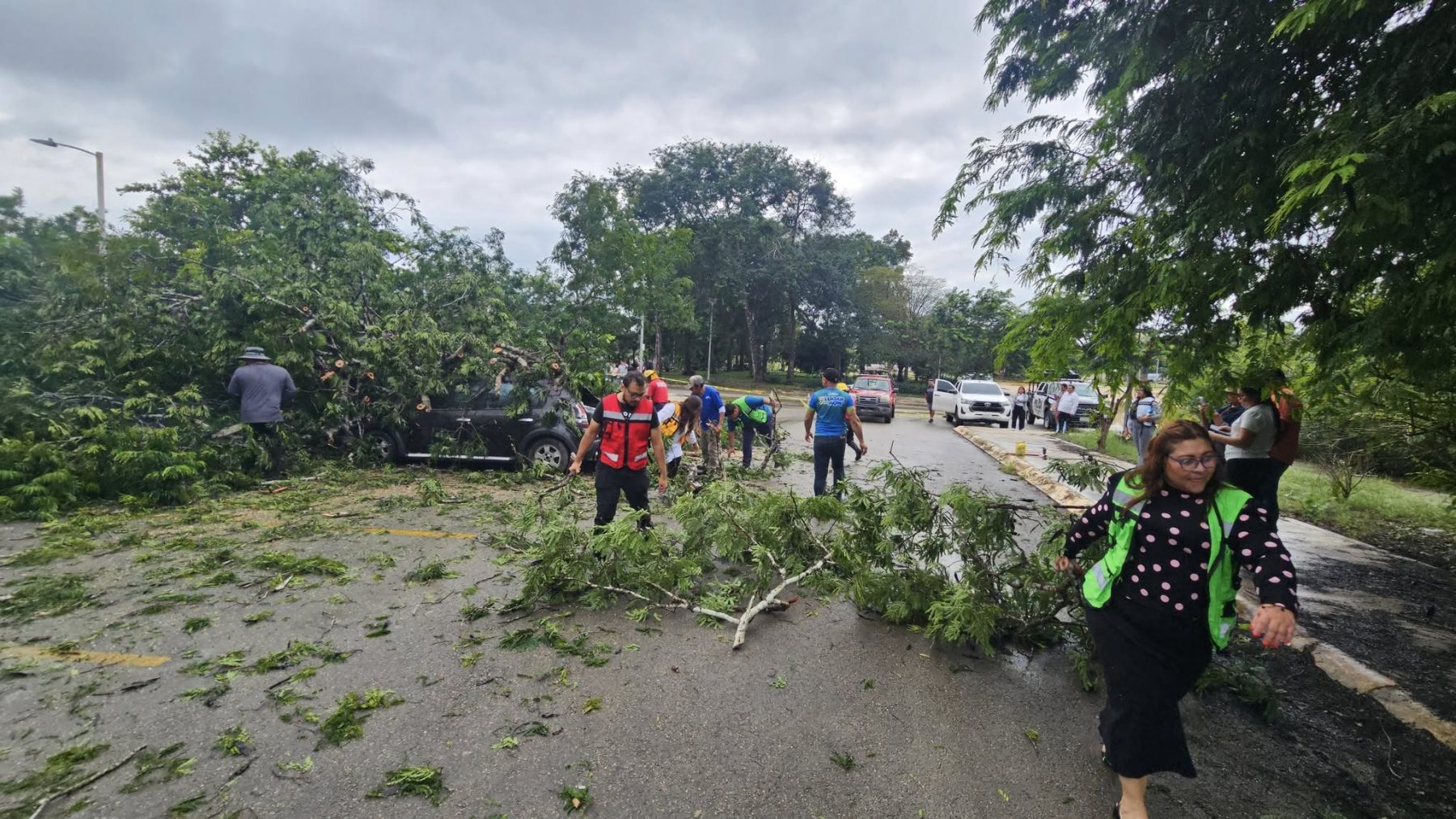 CHETUMAL, 13 de noviembre. – Las lluvias que cayeron esta tarde sobre la capital provocaron un incidente inesperado en la Universidad Tecnológica de Chetumal, donde un árbol terminó desplomándose sobre un vehículo estacionado en el área de alumnos.