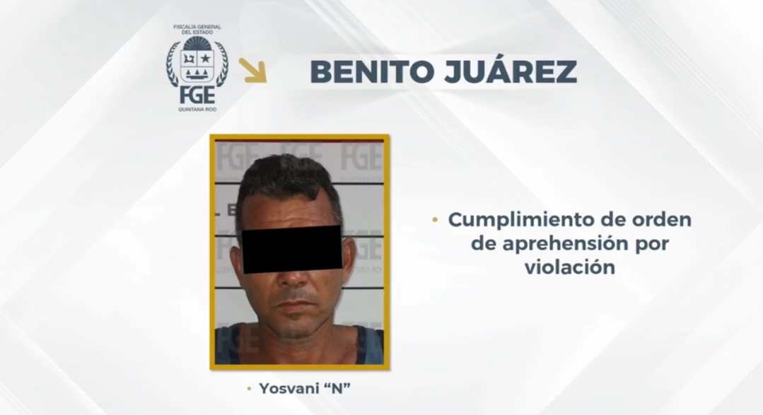 Cancún, 28 de julio.- Un hombre identificado como Yosbani “N”, de 42 años y originario de Cuba, fue detenido por elementos de la Fiscalía General del Estado tras ser acusado de violar a su pareja sentimental en Cancún.