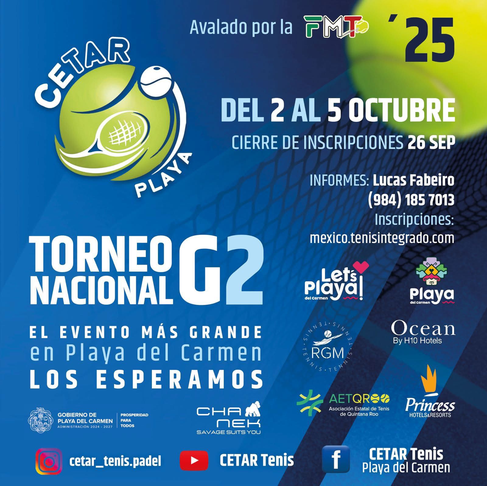 Más de un centenar de jugadores, entre los 10 y 18 años de edad en ambas ramas, provenientes de todo el país, disputarán del 2 al 5 de octubre próximos en dos sedes del corazón de la Riviera Maya, el Torneo Nacional G2, avalado por la Federación Mexicana del Deporte Blanco