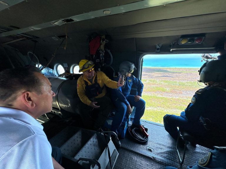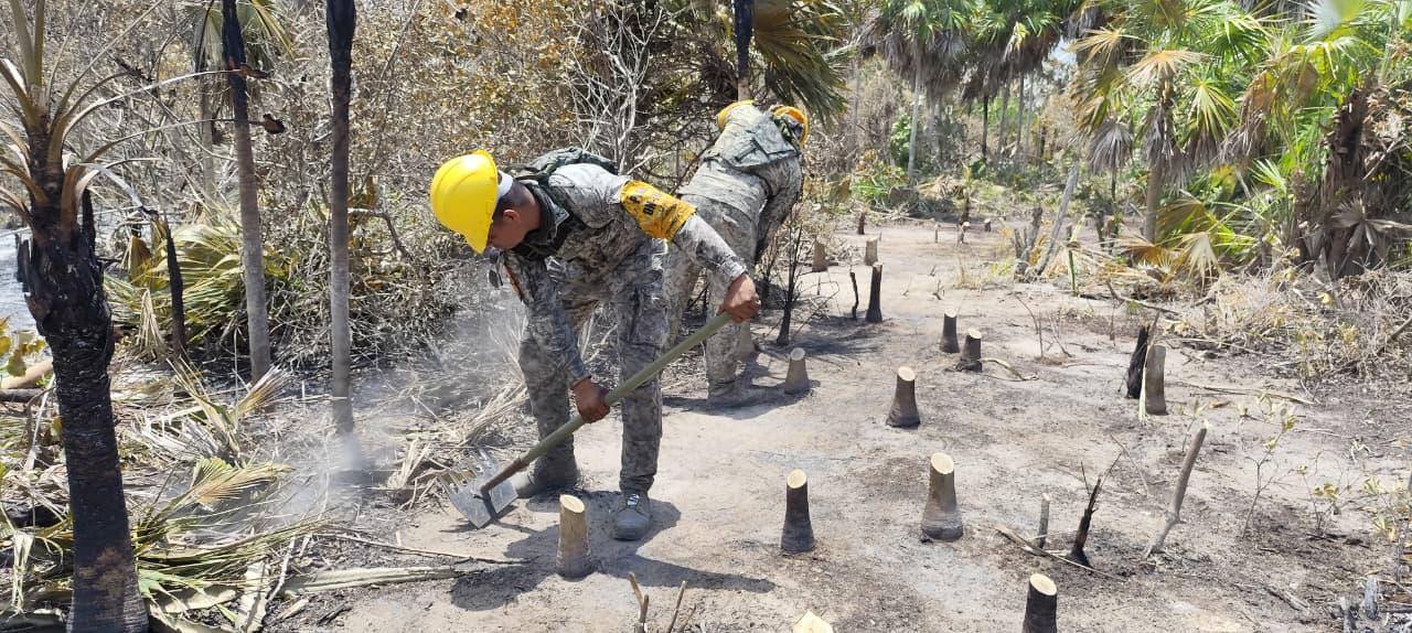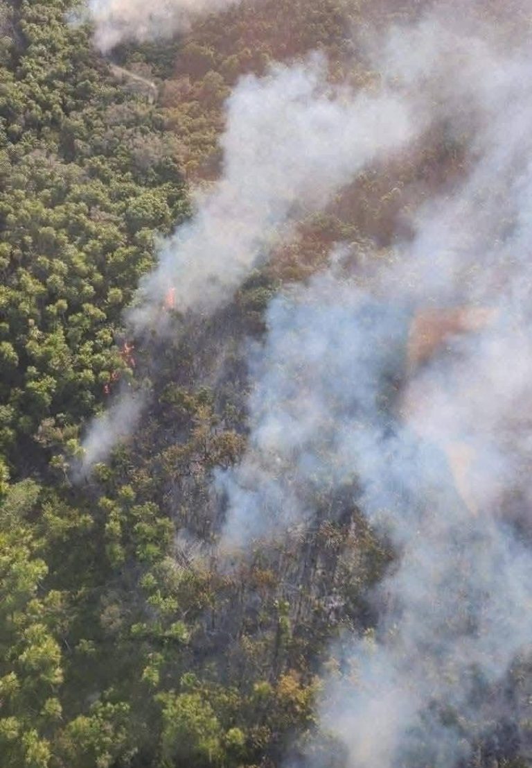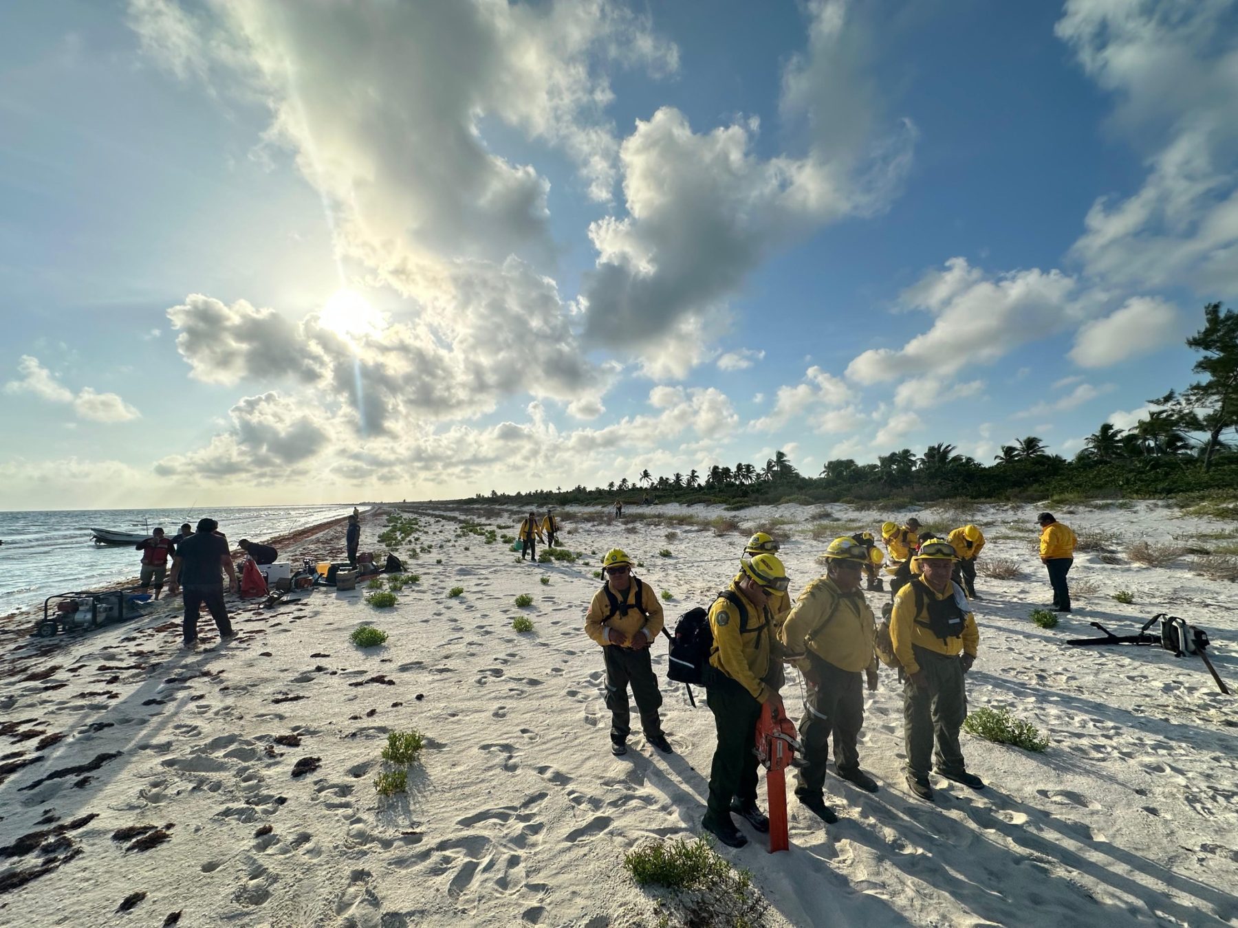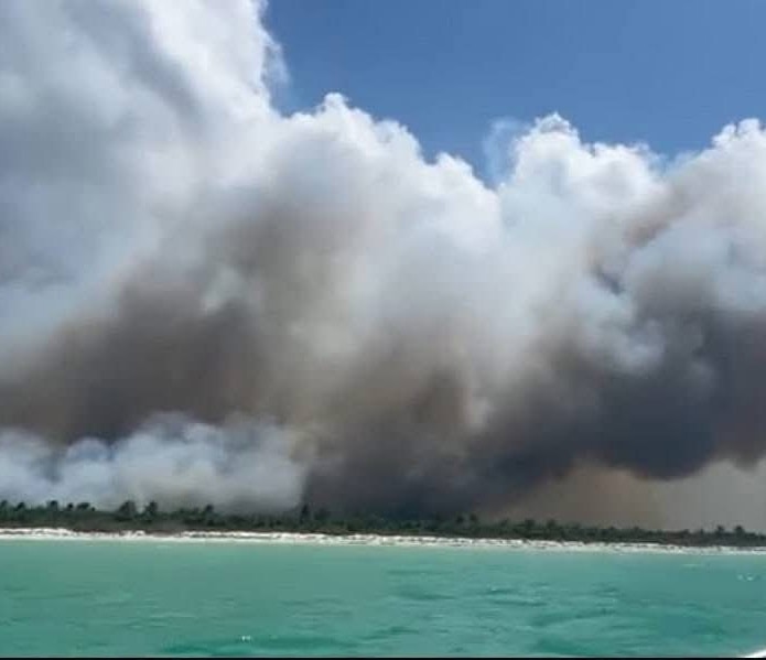 Holbox, Lázaro Cárdenas, 1 de septiembre.- Tras seis días de intensas labores por tierra y aire, autoridades de los tres niveles de gobierno, en coordinación con brigadistas y voluntarios, lograron sofocar al 100% el incendio forestal registrado en la ensenada de Holbox, el cual consumió más de 400 hectáreas de arbustos y manglar.