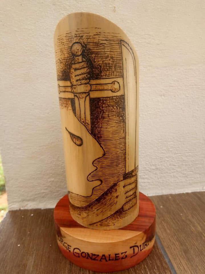 Abajo: un regalo de don Juan Cima Barzon, que mucho me honra, basado en la portada, obra de mi inolvidable amigo Elio Carmichael (qepd), de mi libro La Rebelión de los Mayas, cuya segunda y última edición se publicó en 1978. En septiembre de este año publicaré la versión definitiva de este libro.