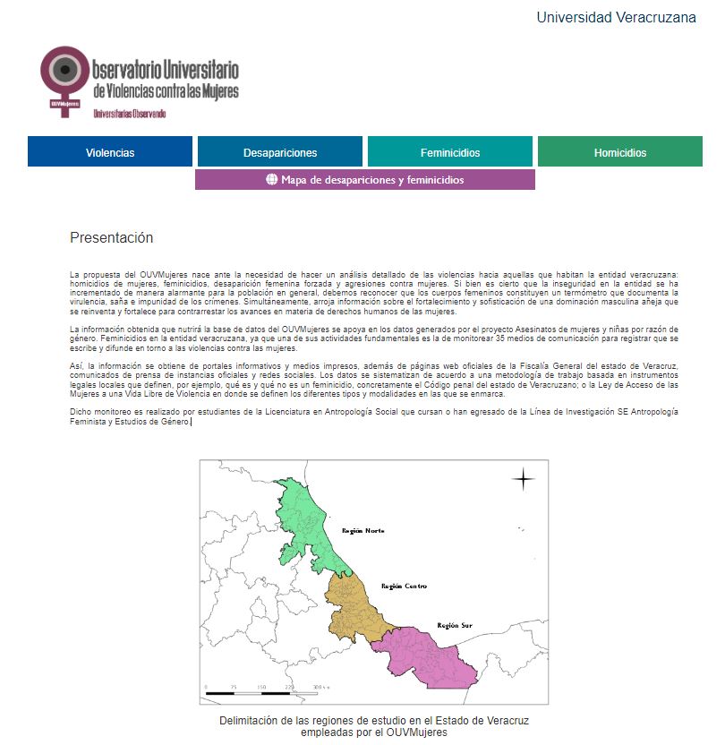 La región centro concentra el mayor número de casos con 38. Le sigue la zona sur con 14 y la región norte del con estado de Veracruz con ocho casos. Los municipios de Xalapa, Veracruz y Perote ocupan el primer lugar estatal con cuatro feminicidios en cada una de estas localidades.