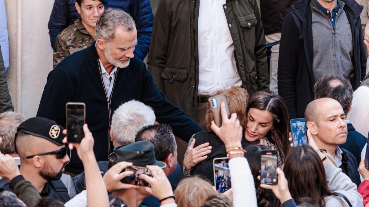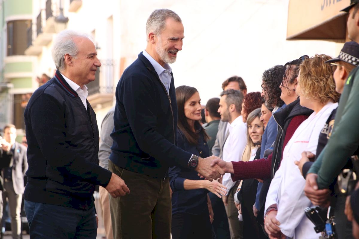 Felipe VI y Letizia han llegado a Utiel sobre las 13:45 horas procedentes de Chiva. En Utiel, y entre aplausos y ‘vivas’ por parte de centenares de personas que abarrotaban la plaza donde ha tenido lugar su llegada, los reyes de España, acompañados por el presidente de la Generalitat, Carlos Mazón, y el ministro de Política Territorial, Ángel Víctor Torres, han saludado a autoridades locales y tienen previsto visitar algunos de los puntos donde la dana causó más estragos.