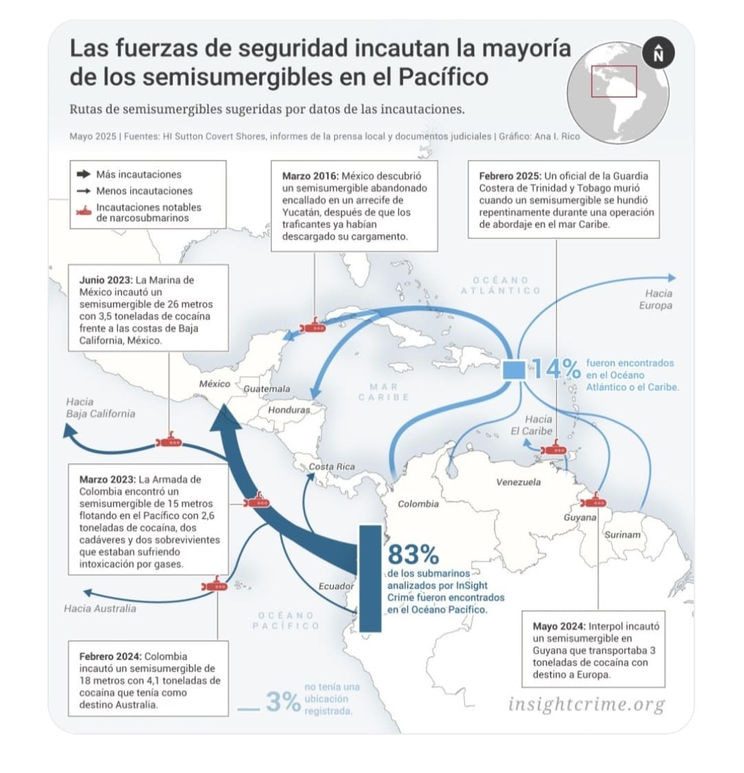 Asimismo, dicho medio cita al Centro Internacional Marítimo de Análisis Contra el Narcotráfico (Cimcon) de Colombia, el cual señala que, por su ubicación y geografía estratégica, México resulta un “territorio imprescindible” para las organizaciones criminales transnacionales.