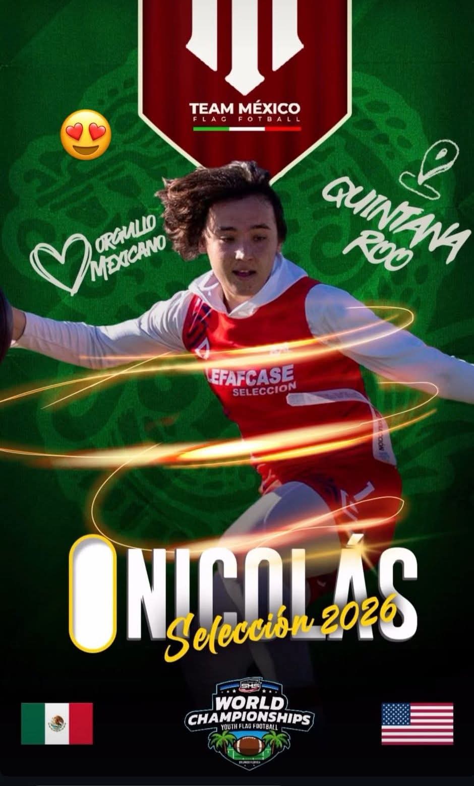 Mientras que Nicolás García Vives, quien es parte de los Sharks U-17, ha sido seleccionado para ser parte del -Team México-, que participará del 19 al 22 de febrero próximos en el -Youth Flag Football World Championships- a jugarse en el “ESPN Wide World of Sports Complex” de Orlando, Florida; por lo que dicho certamen tendrá cobertura televisiva internacional a través del -Líder Mundial en Deportes-.