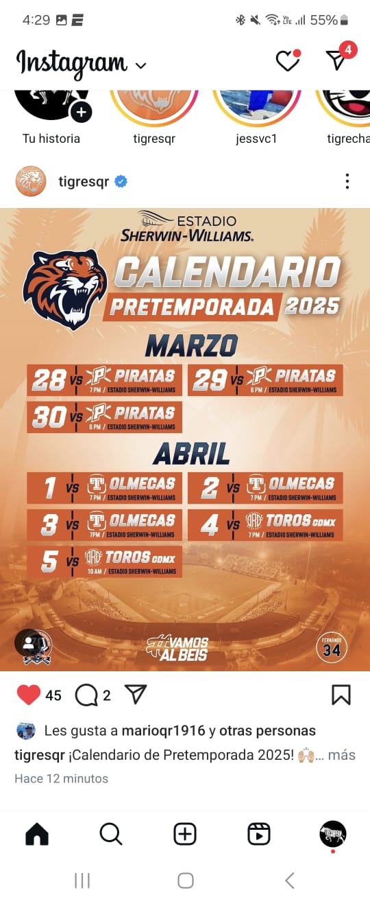 CANCÚN, Q. ROO a 24 de marzo.- Cuando solo restan 25 días de que se ponga en marcha la Temporada 2025 de la Liga Mexicana de Beisbol (LMB), los Tigres de Quintana Roo hicieron oficial su calendario de juegos de exhibición, mismo que constará de un total de 14, de los cuales ocho serán en el estadio “Beto Ávila Sherwin Williams” de Cancún, y otros seis fuera de territorio quintanarroense.